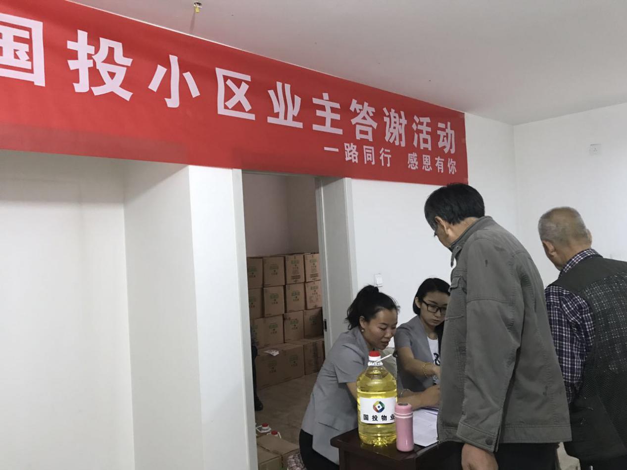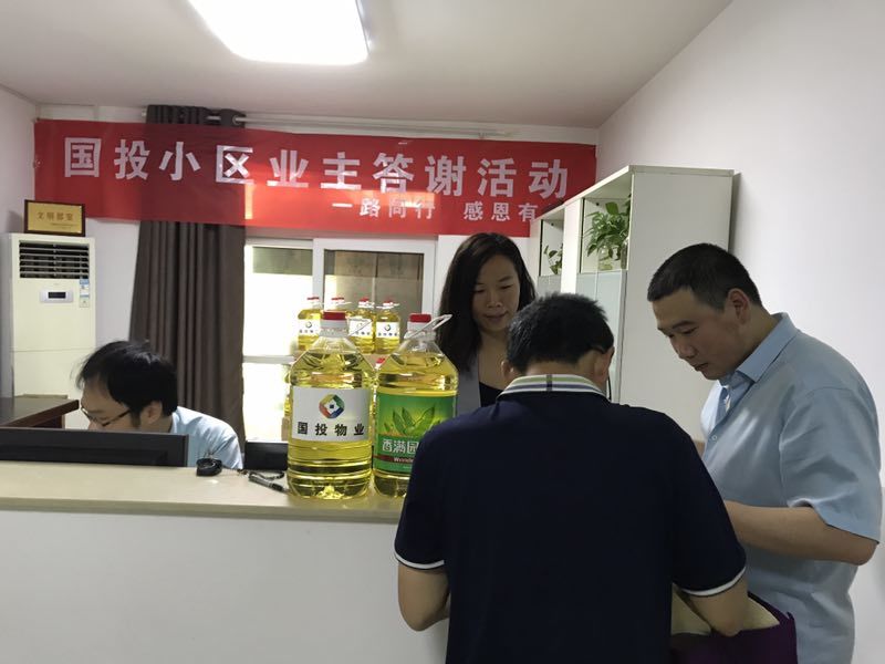 2017年6月5日,為答謝國(guó)興小區(qū)業(yè)主對(duì)物業(yè)工作的大力支持,同時(shí)為了激勵(lì)2017年物業(yè)費(fèi)的繳納,國(guó)投物業(yè)特舉辦了一場(chǎng)“繳物業(yè)費(fèi)、發(fā)食用油”業(yè)主答謝活動(dòng)。