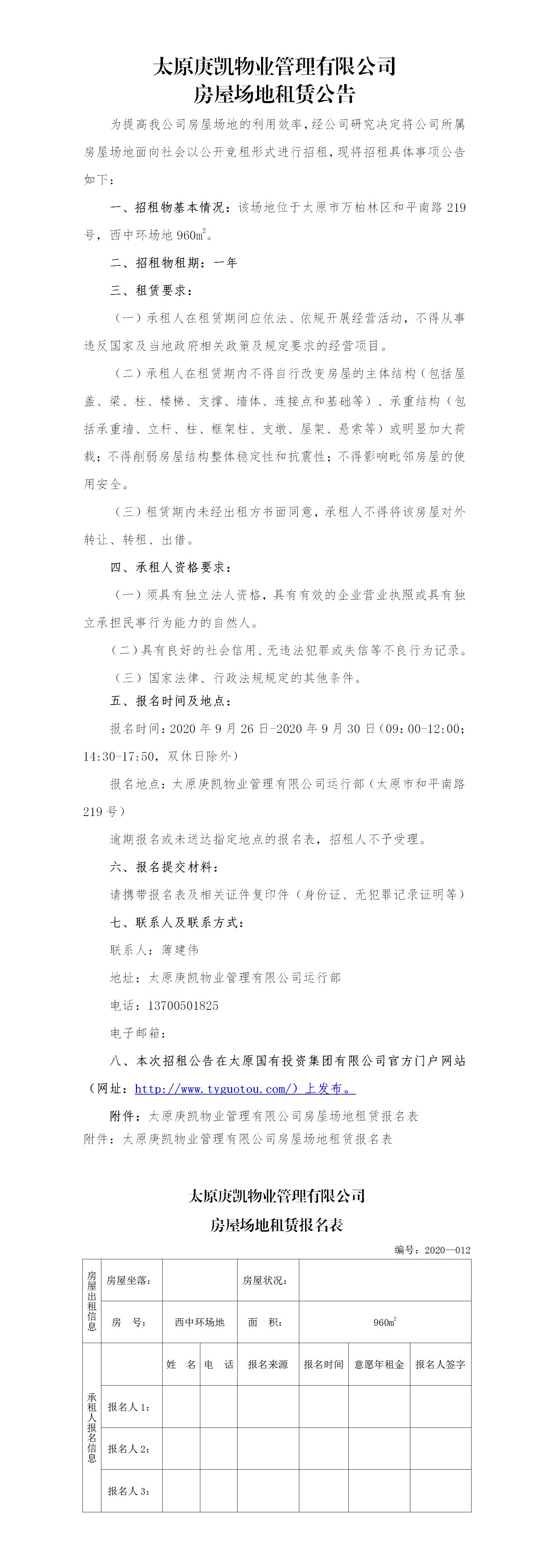 太原庚凱物業(yè)管理有限公司房屋場地租賃公告(十二)