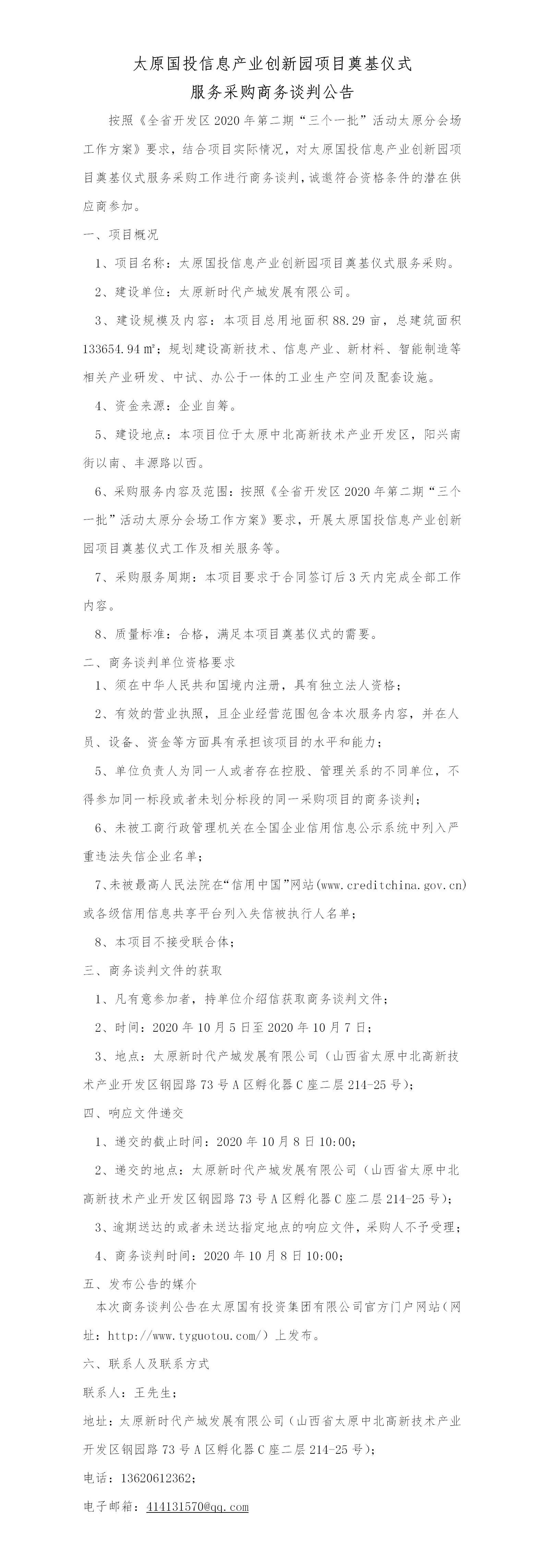 太原國投信息產(chǎn)業(yè)創(chuàng)新園項目奠基儀式服務(wù)采購商務(wù)談判公告.docx