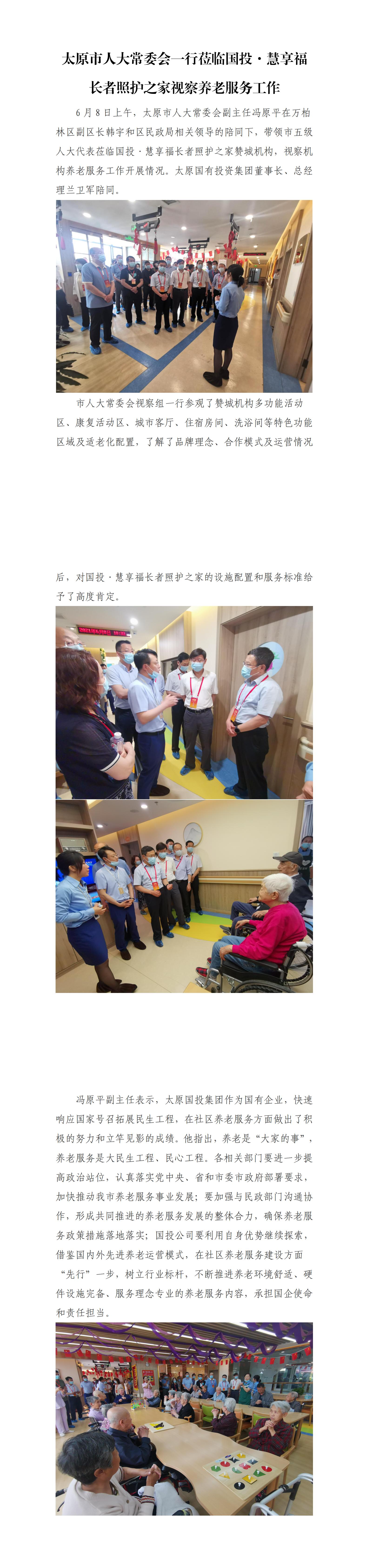 太原市人大常委會一行蒞臨國投·慧享福長者照護之家視察養(yǎng)老服務(wù)工作