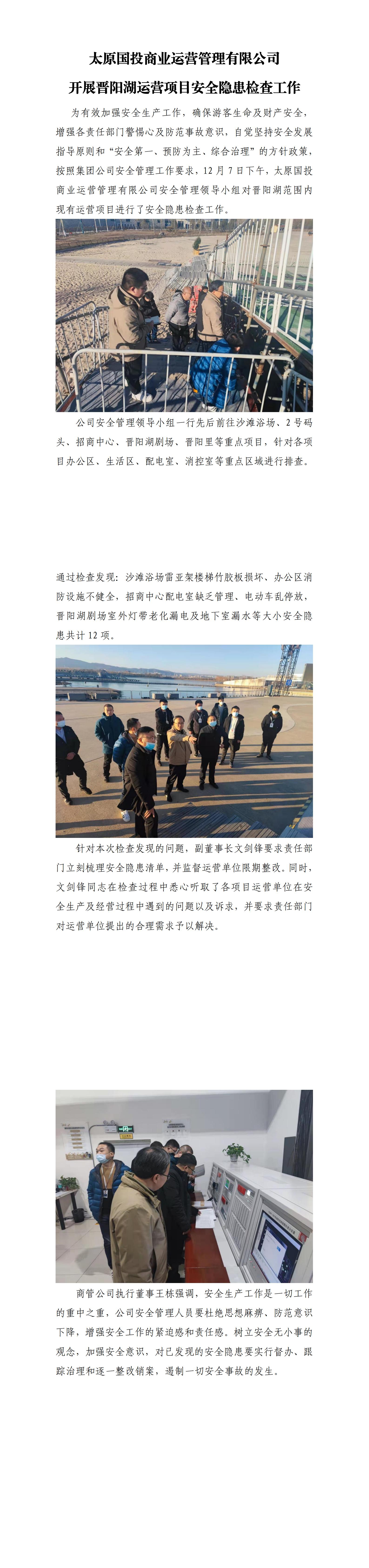 太原國投商業(yè)運(yùn)營管理有限公司開展晉陽湖運(yùn)營項(xiàng)目安全隱患檢查工作