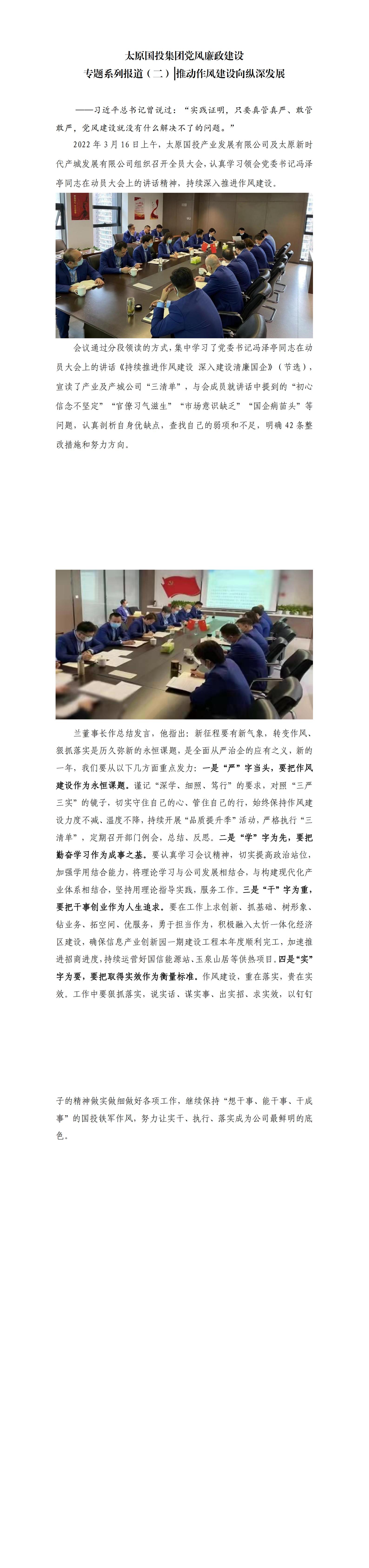 太原國(guó)投集團(tuán)黨風(fēng)廉政建設(shè)專題系列報(bào)道(二)推動(dòng)作風(fēng)建設(shè)向縱深發(fā)展