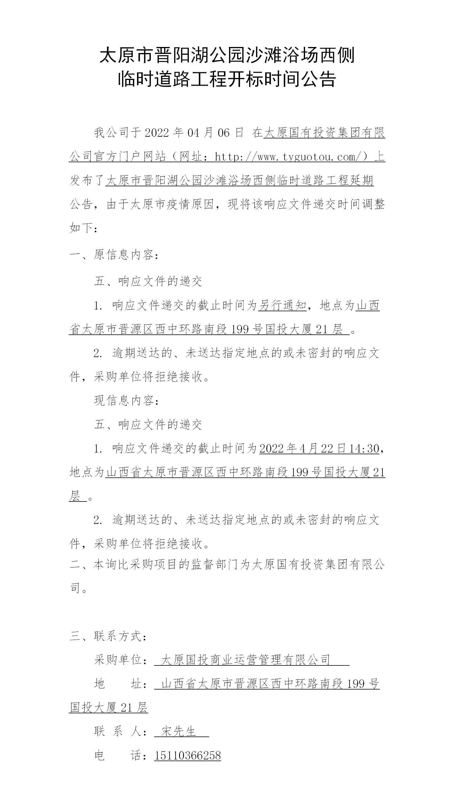 晉陽湖公園沙灘浴場西側臨時道路工程開標時間公告