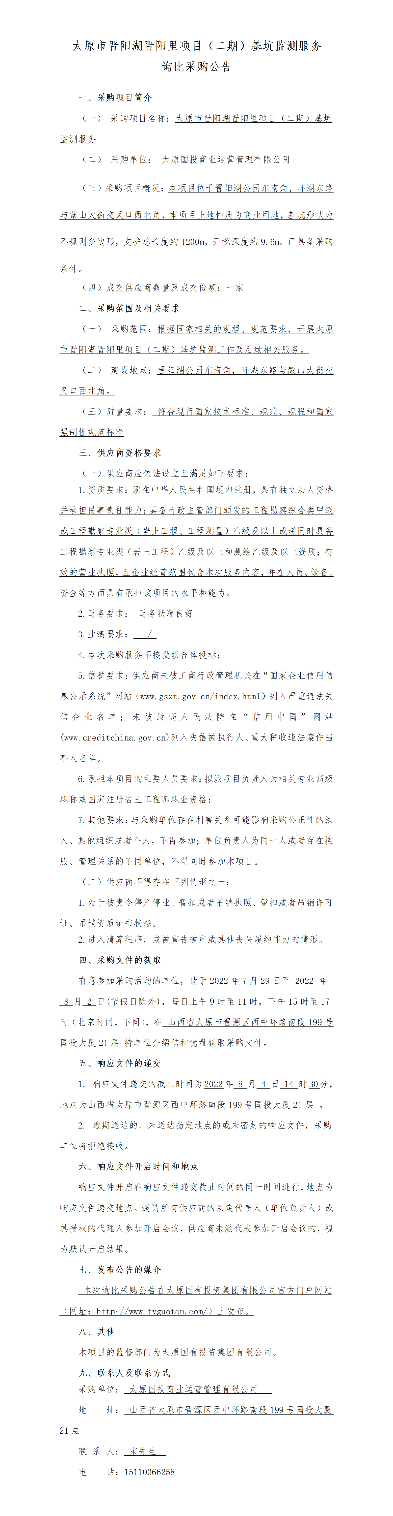 太原市晉陽湖晉陽里項目(二期)基坑監(jiān)測服務(wù)詢比采購公告