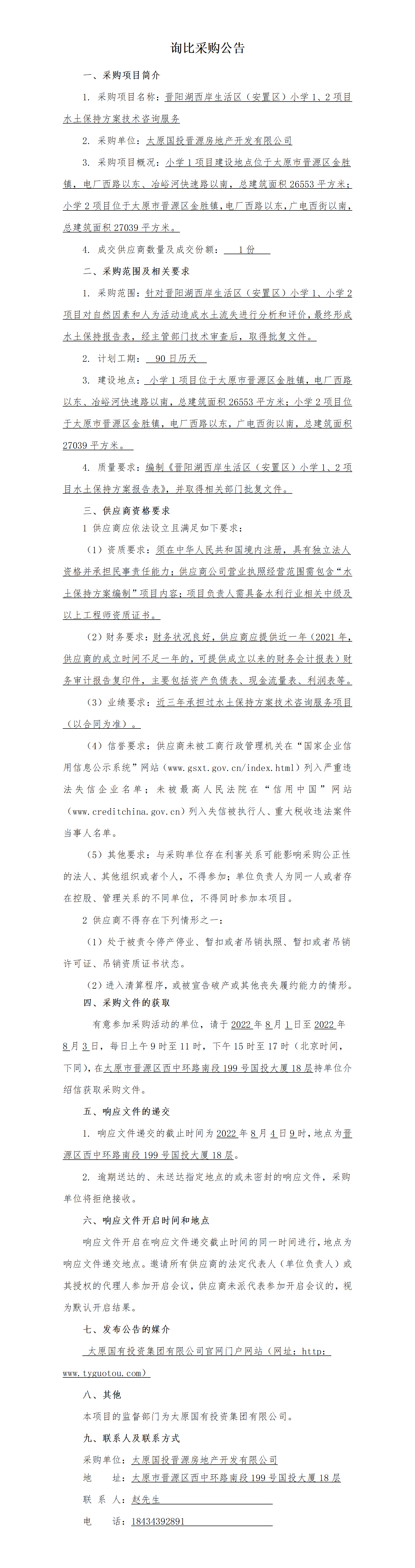 晉陽(yáng)湖西岸生活區(qū)(安置區(qū))小學(xué)1、2項(xiàng)目水土保持方案技術(shù)咨詢服務(wù)詢比采購(gòu)公告