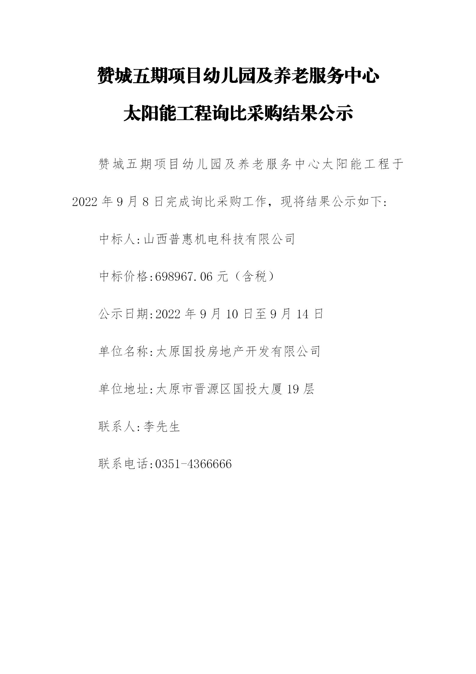 贊城五期項(xiàng)目幼兒園及養(yǎng)老服務(wù)中心太陽能工程詢比采購結(jié)果公示