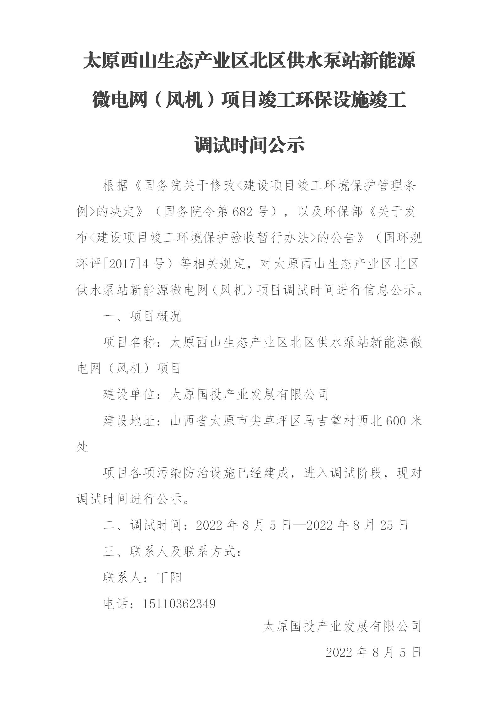 太原西山生態(tài)產(chǎn)業(yè)區(qū)北區(qū)供水泵站新能源微電網(wǎng)(風(fēng)機(jī))項(xiàng)目調(diào)試公示