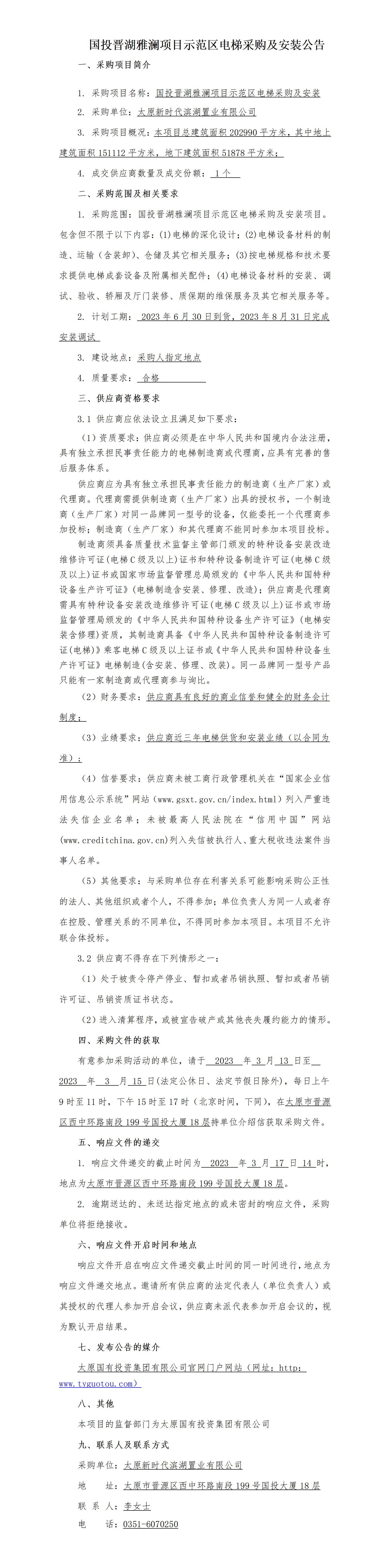 晉湖雅瀾項目示范區(qū)電梯采購及安裝詢比公告