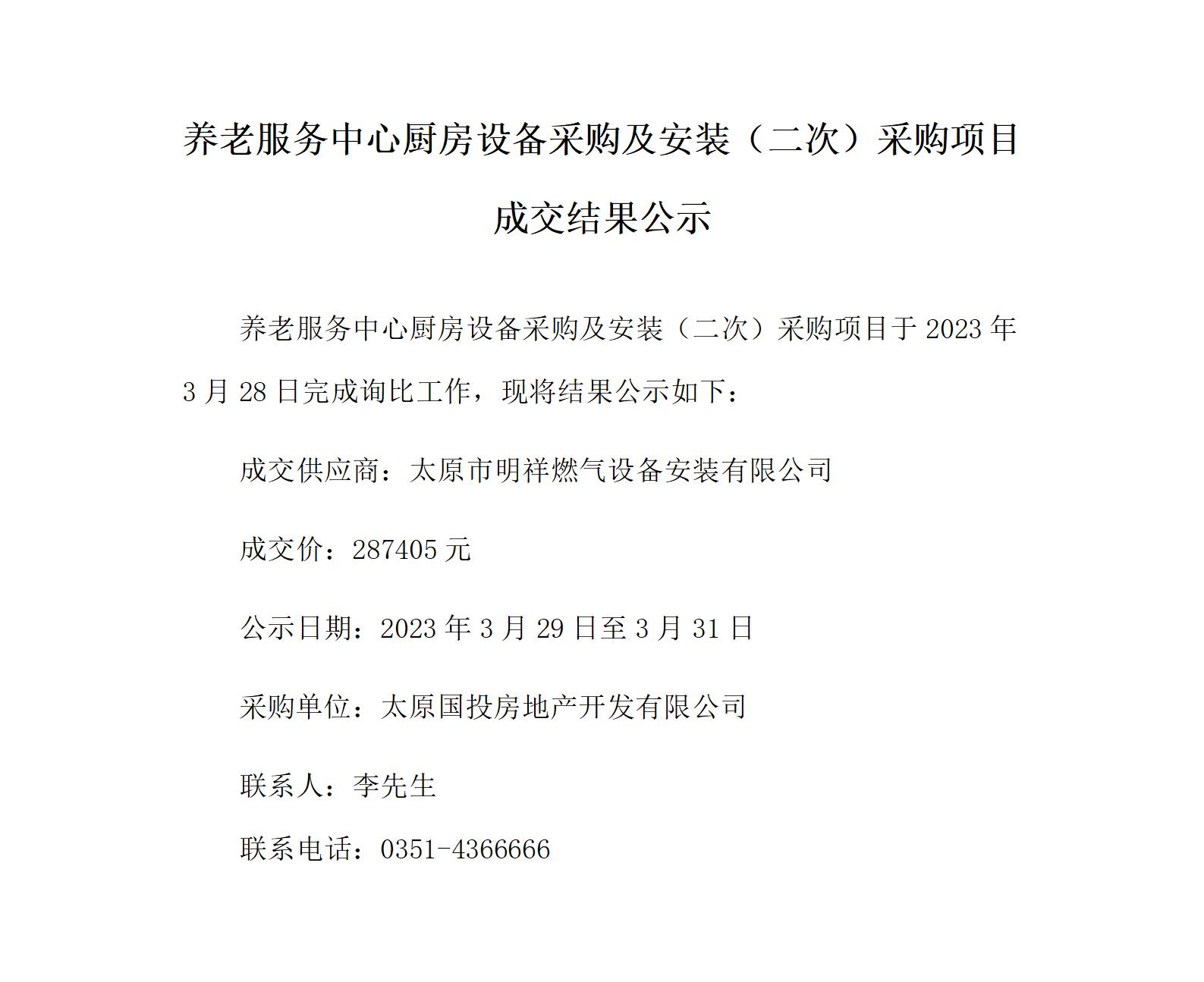養(yǎng)老服務(wù)中心廚房設(shè)備采購及安裝(二次)采購項目成交結(jié)果公示