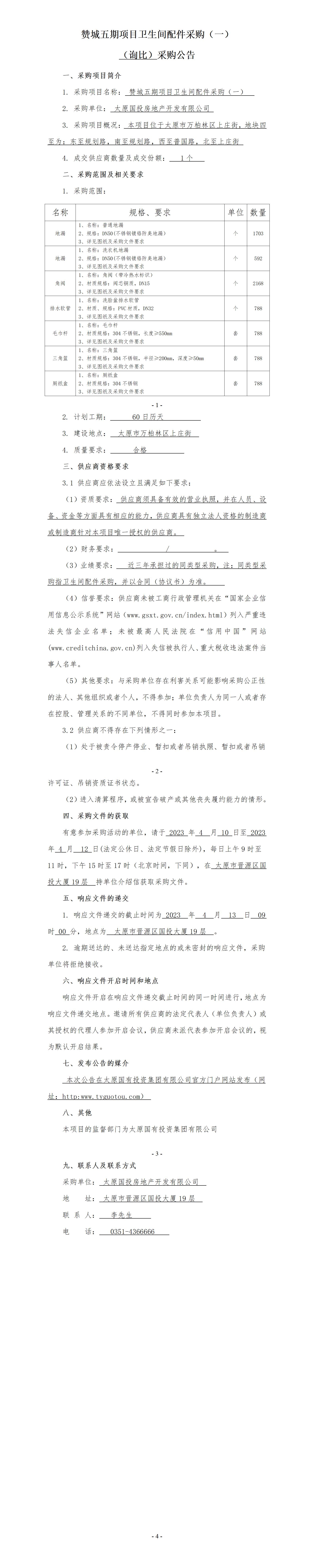 贊城五期項(xiàng)目衛(wèi)生間配件采購(gòu)(一)詢(xún)比采購(gòu)公告