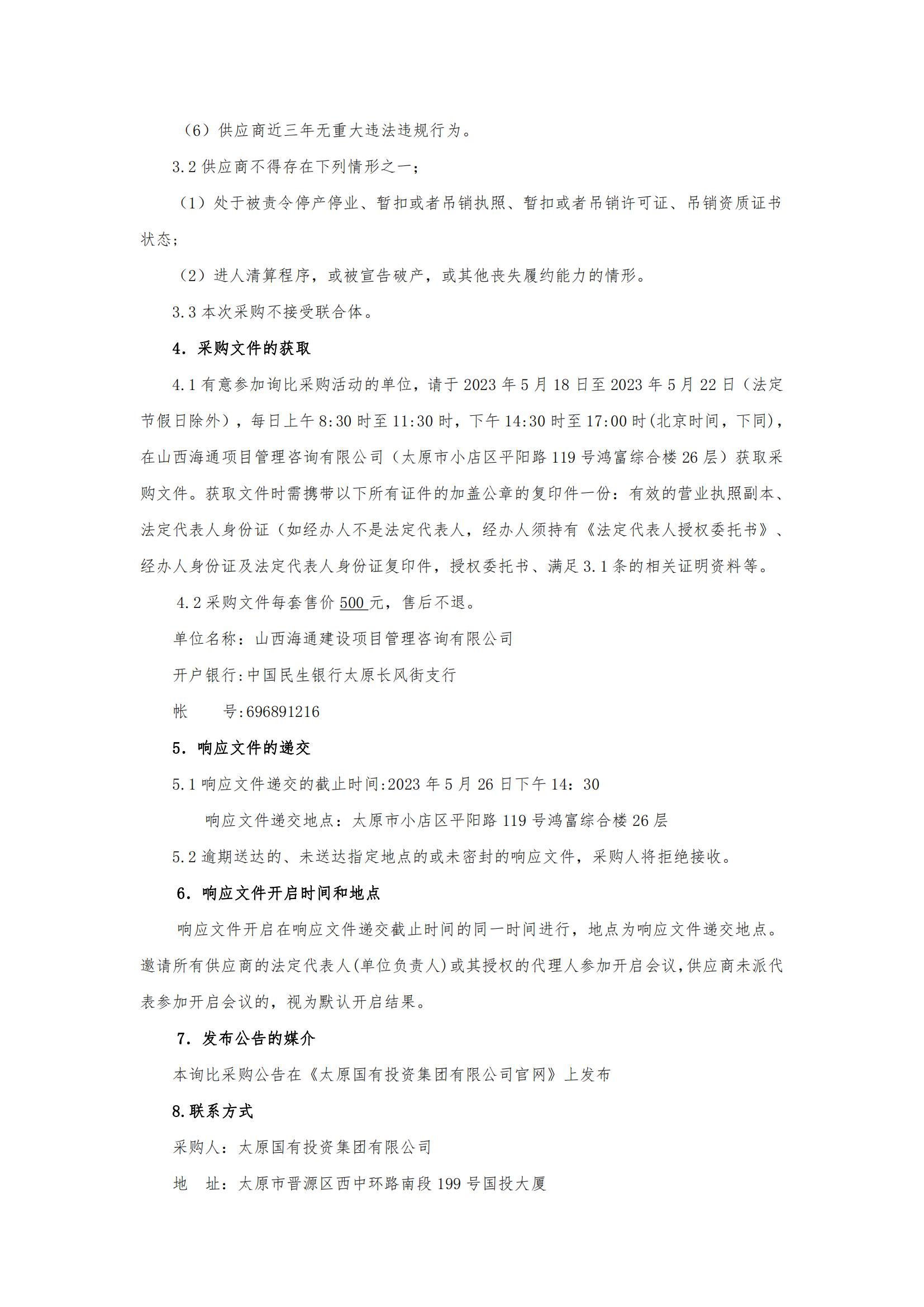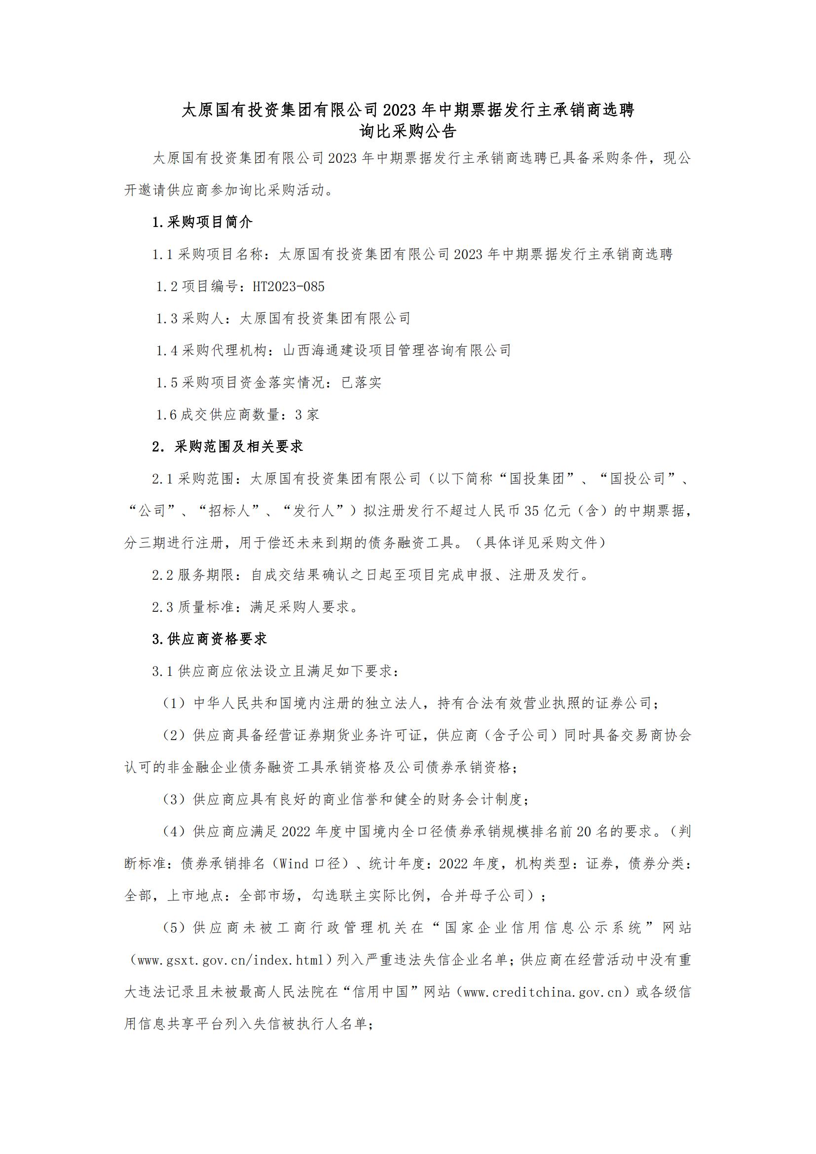 太原國(guó)有投資集團(tuán)有限公司2023年中期票據(jù)發(fā)行主承銷(xiāo)商選聘詢比采購(gòu)公告