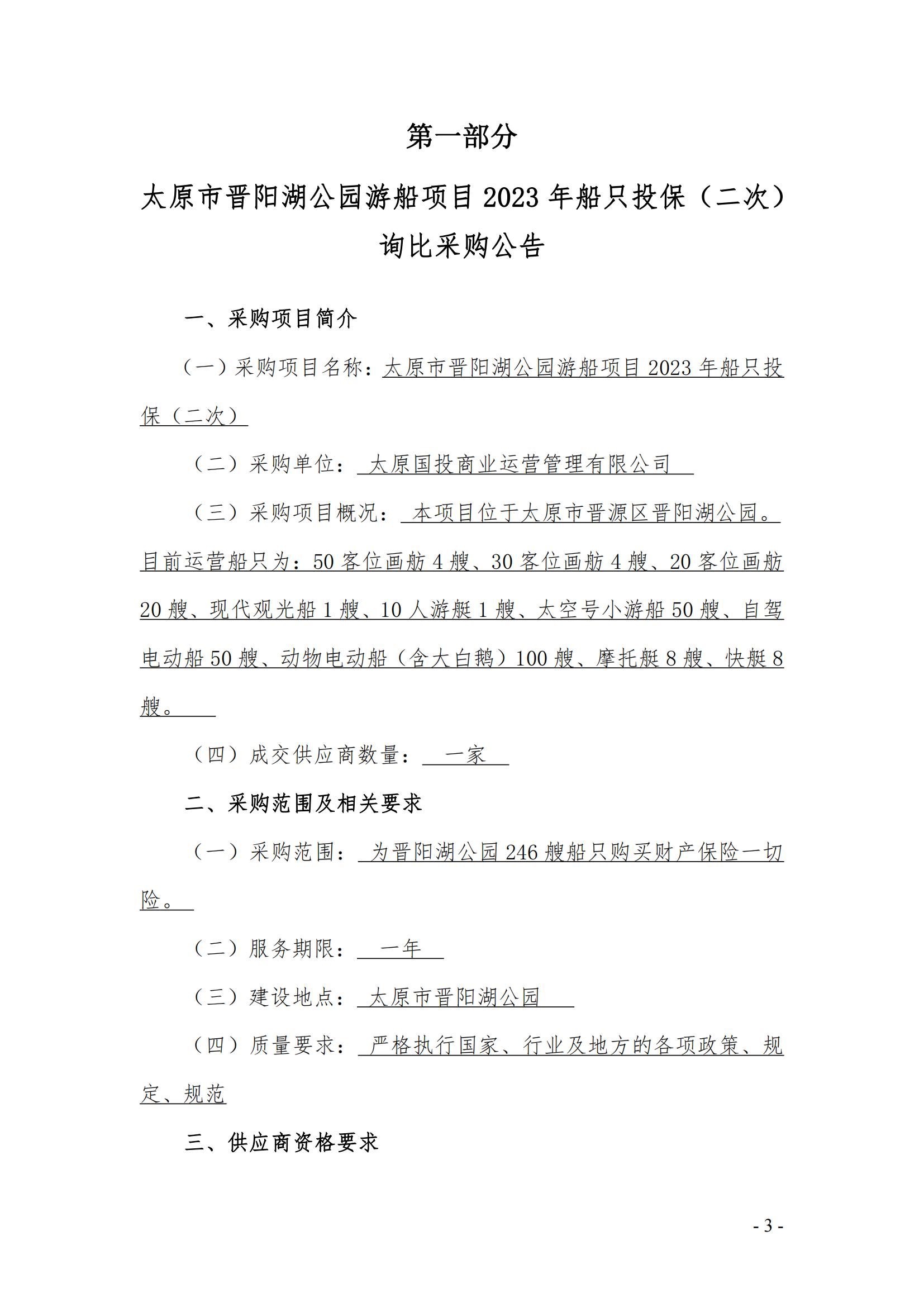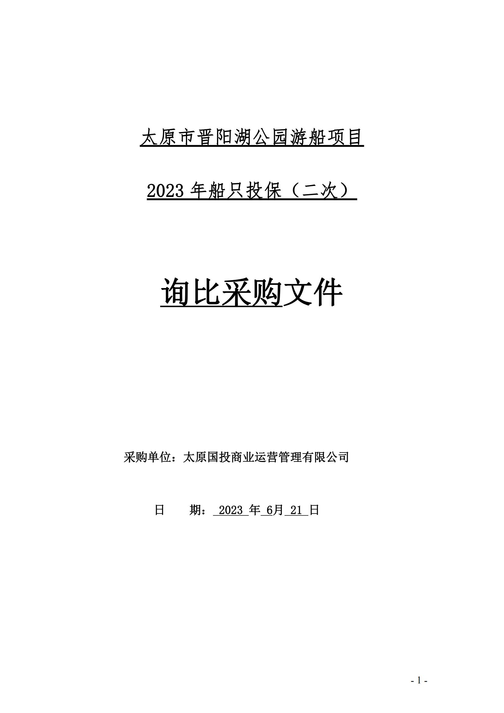 太原市晉陽湖公園游船項目 2023年船只投保(二次)