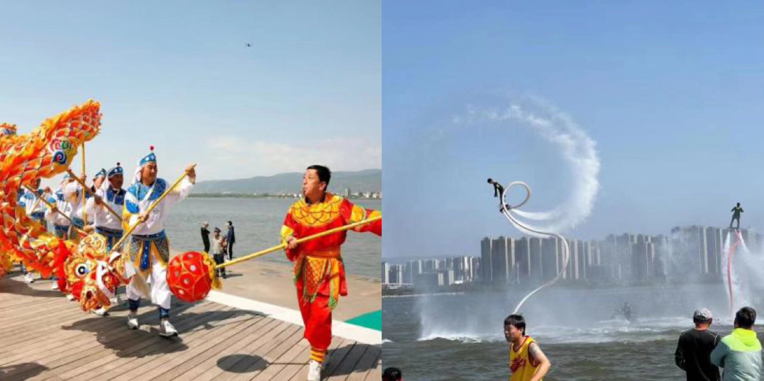 在碧波蕩漾的晉陽(yáng)湖,鑼鼓喧天,群龍熱舞,水中飛起的空中飛人似蛟龍出海,一系列的活動(dòng)吸引了無數(shù)游客前來觀賞,一同歡慶一年一度的中華民族傳統(tǒng)節(jié)日——端午節(jié)。