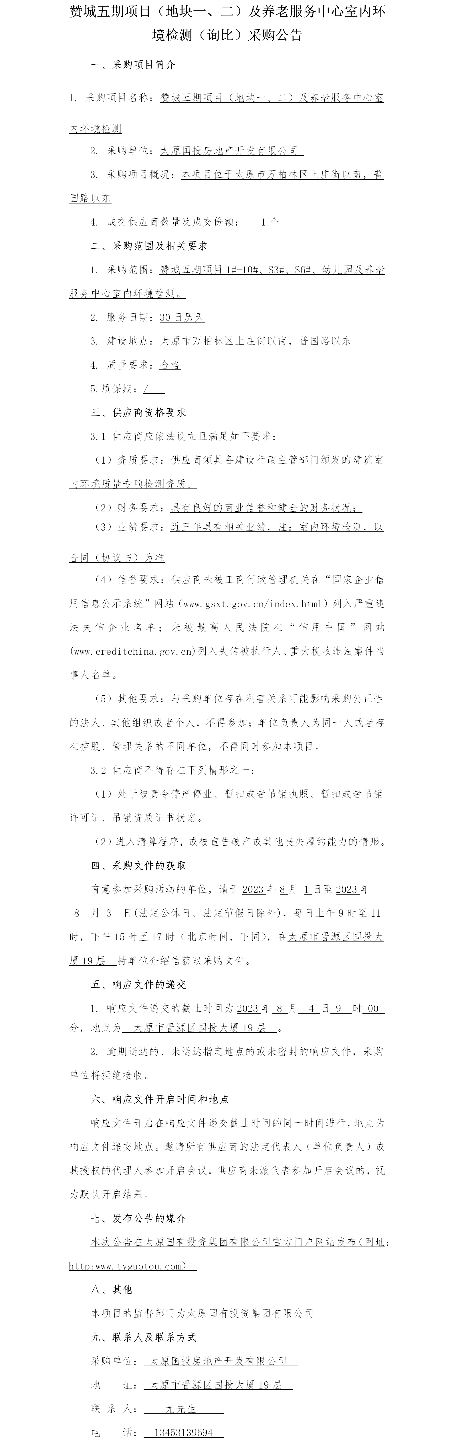 贊城五期項目(地塊一、二)及養(yǎng)老服務(wù)中心室內(nèi)環(huán)境檢測(詢比)采購公告