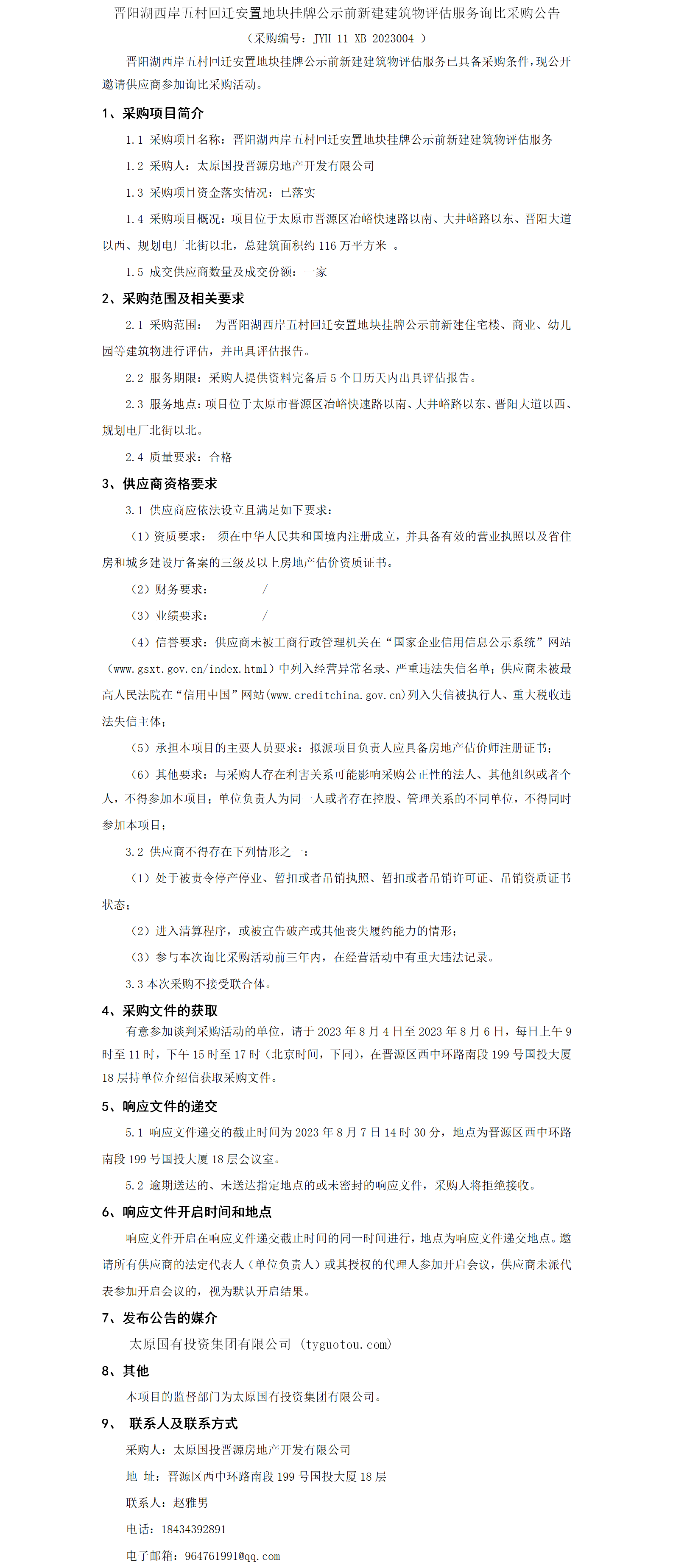 晉陽湖西岸五村回遷安置地塊掛牌公示前新建建筑物評估服務(wù)詢比公告