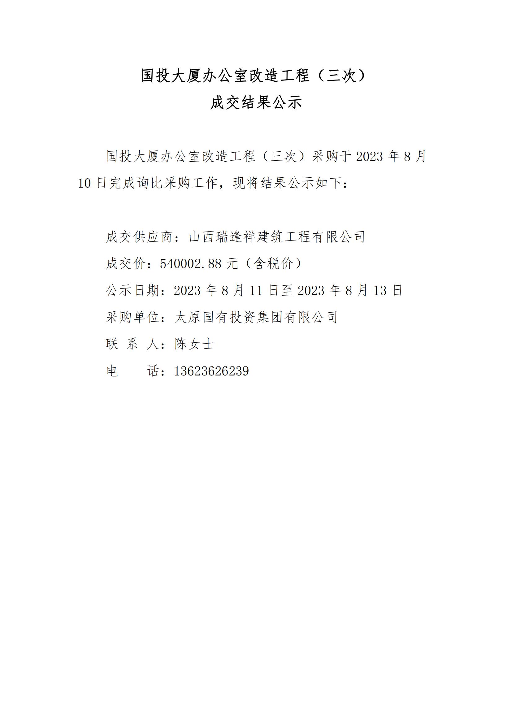 國(guó)投大廈辦公室改造工程(三次) 成交結(jié)果公示
