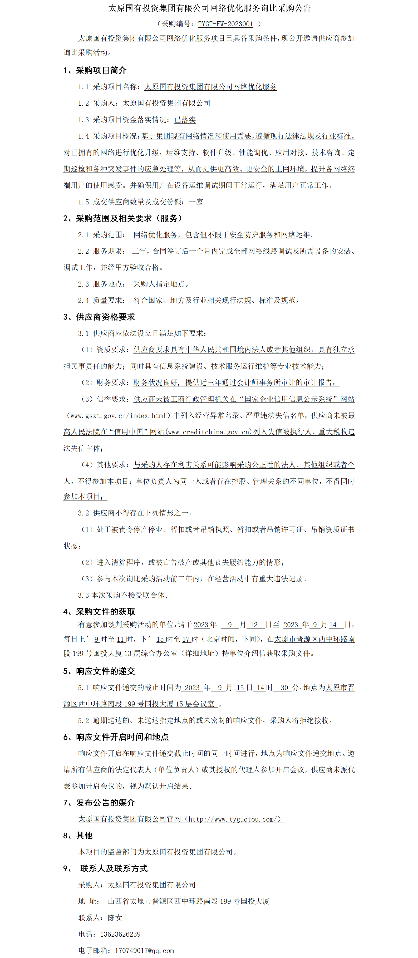 網絡優(yōu)化服務詢比采購公告