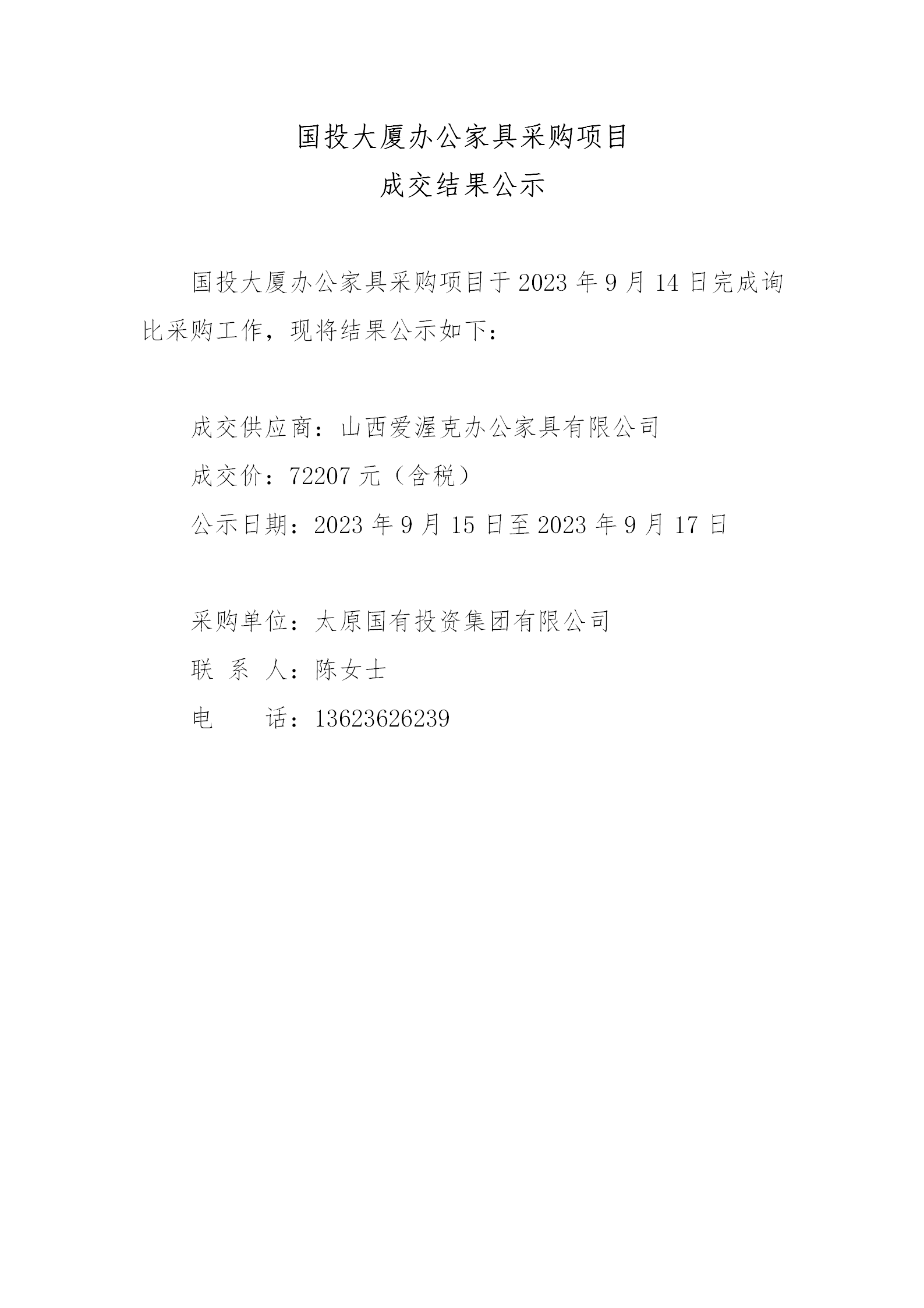 國(guó)投大廈辦公家具采購(gòu)項(xiàng)目成交結(jié)果公示
