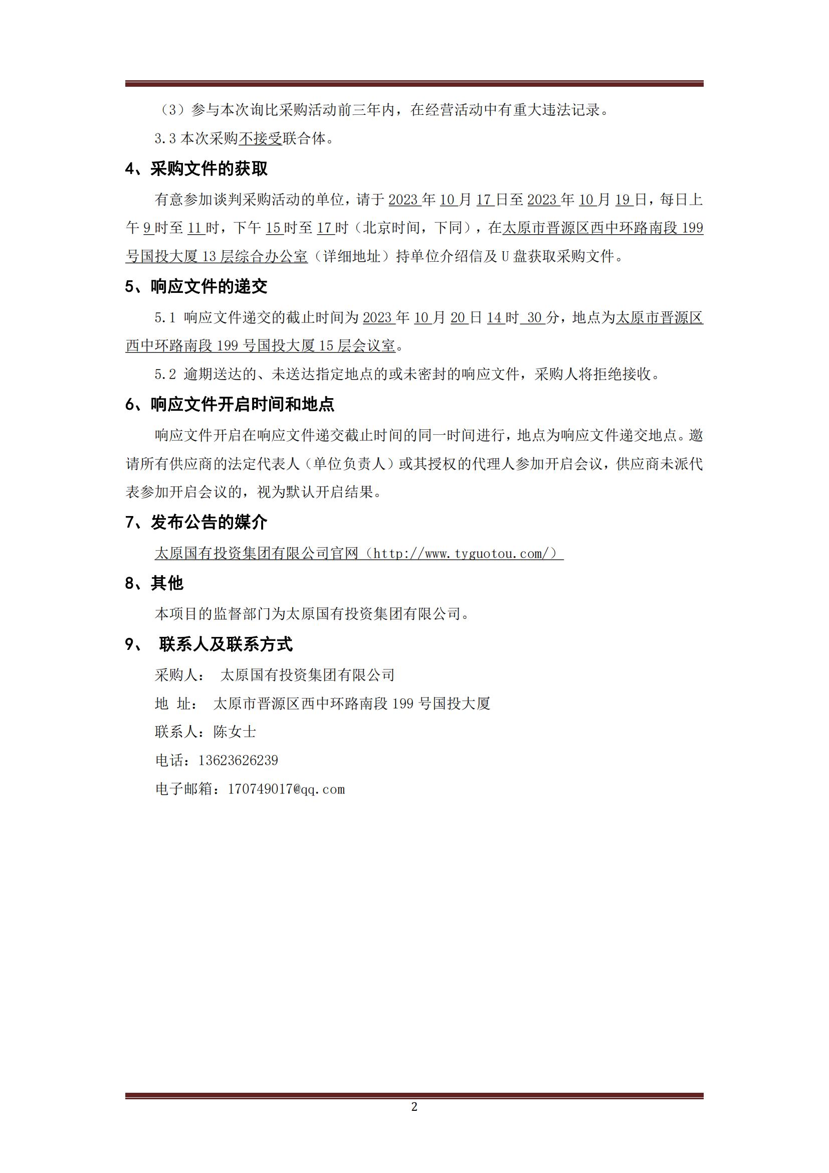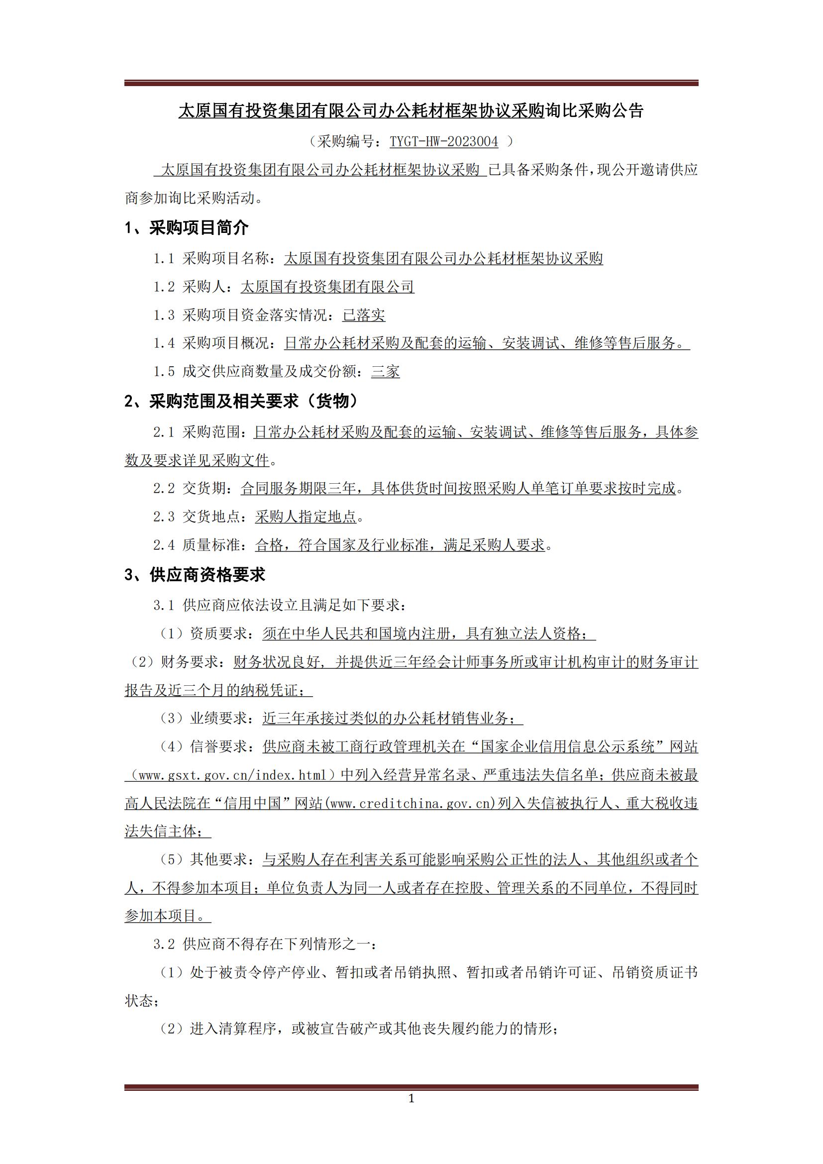 太原國有投資集團(tuán)有限公司辦公耗材采購詢比公告