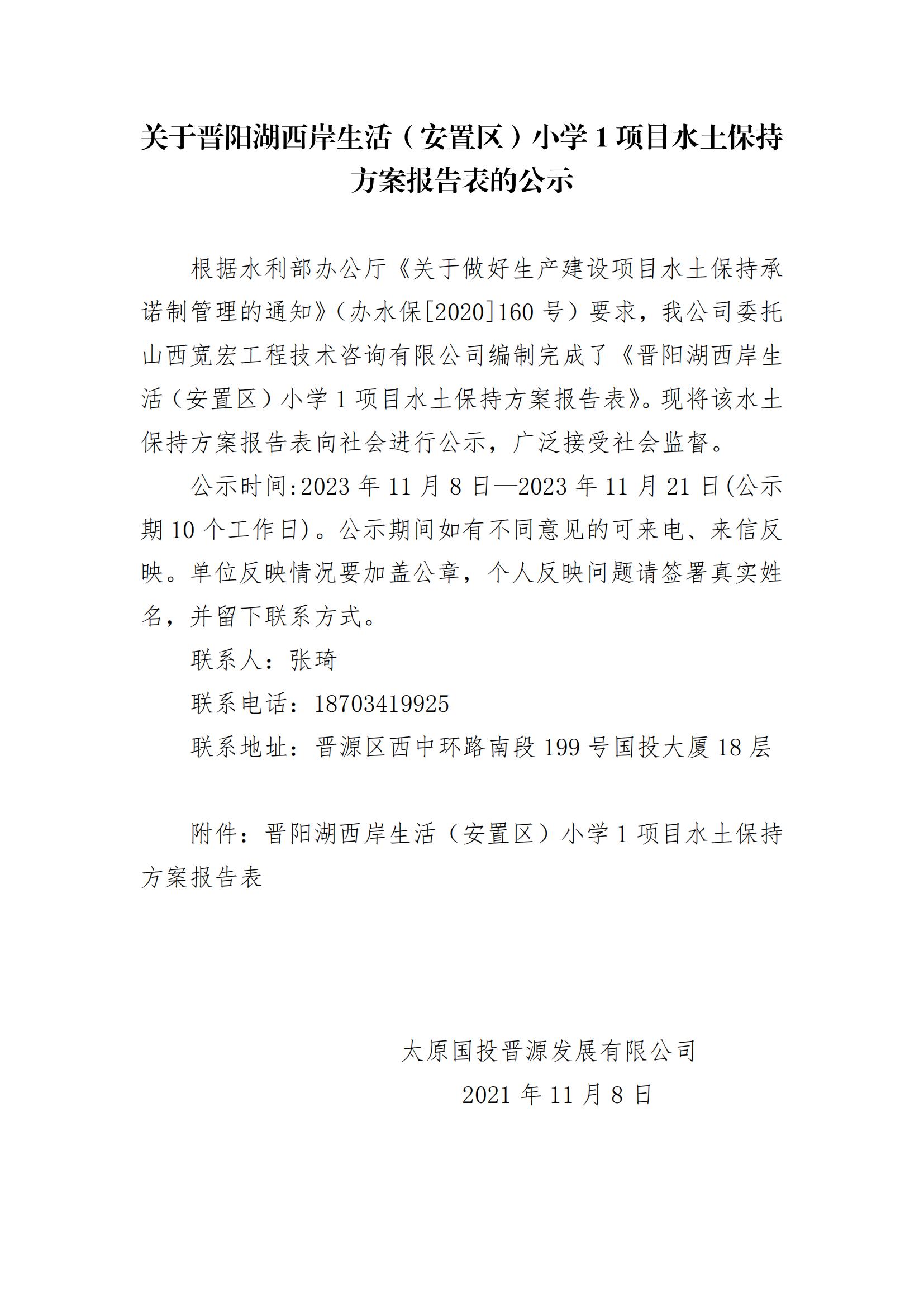 關(guān)于晉陽(yáng)湖西岸生活(安置區(qū))小學(xué)1項(xiàng)目水土保持方案報(bào)告表的公示