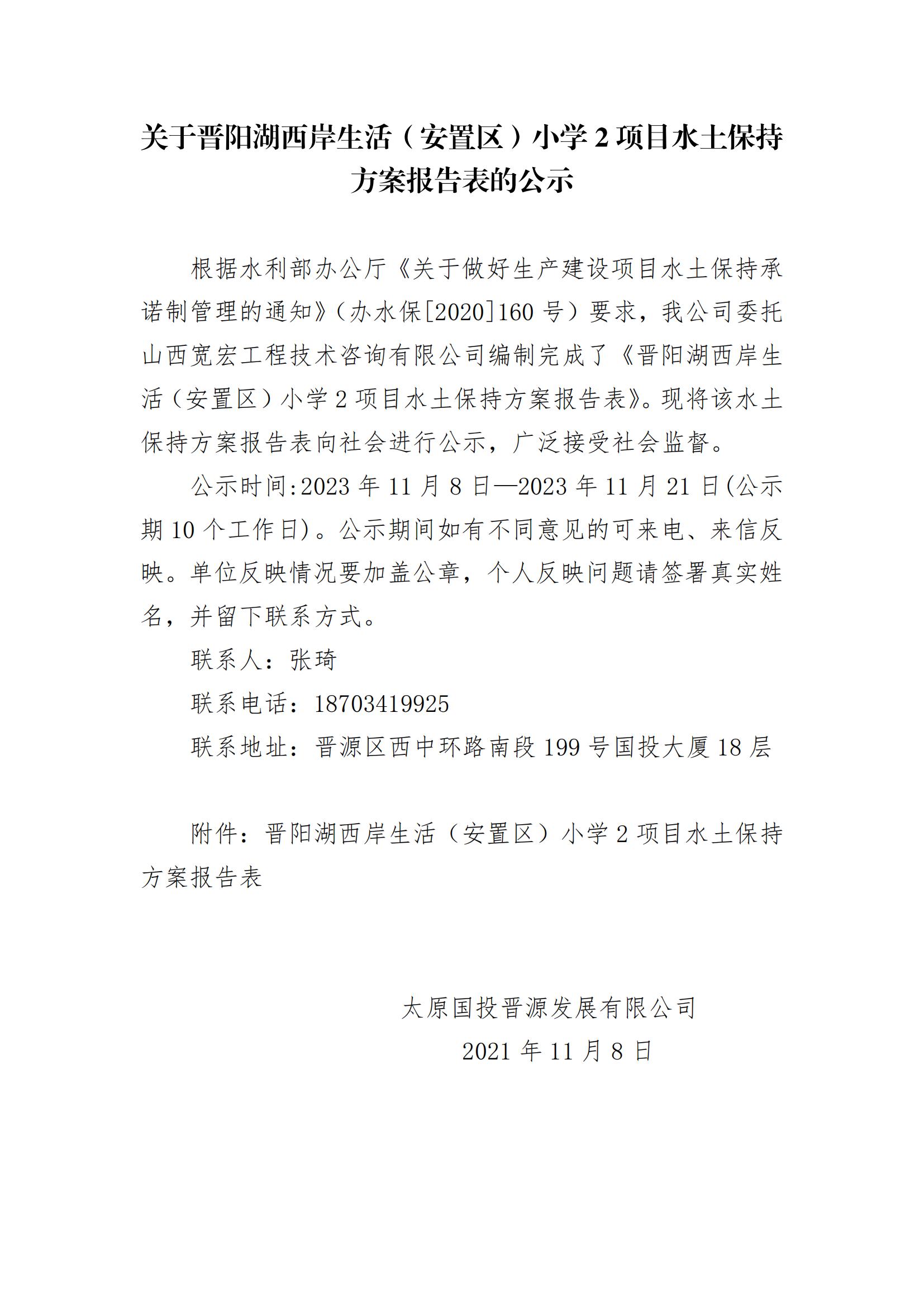 關(guān)于晉陽(yáng)湖西岸生活(安置區(qū))小學(xué)2項(xiàng)目水土保持方案報(bào)告表的公示