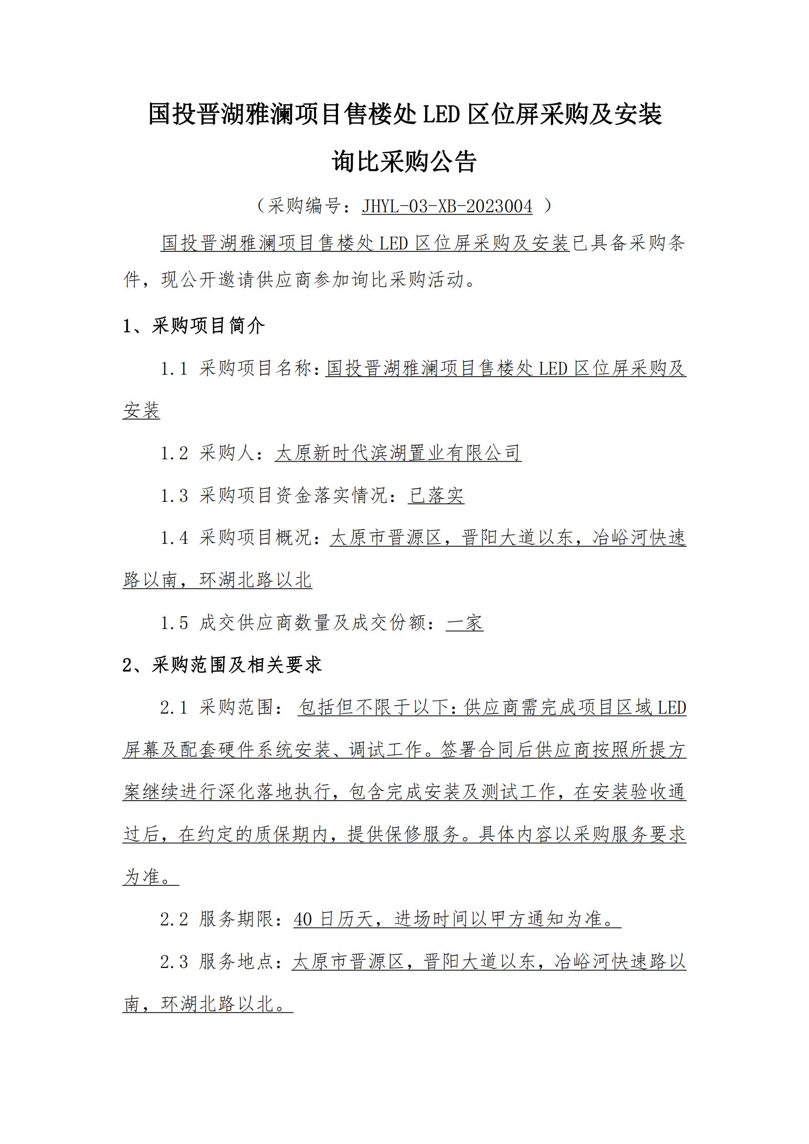 國(guó)投晉湖雅瀾項(xiàng)目售樓處LED區(qū)位屏采購(gòu)及安裝詢比采購(gòu)公告