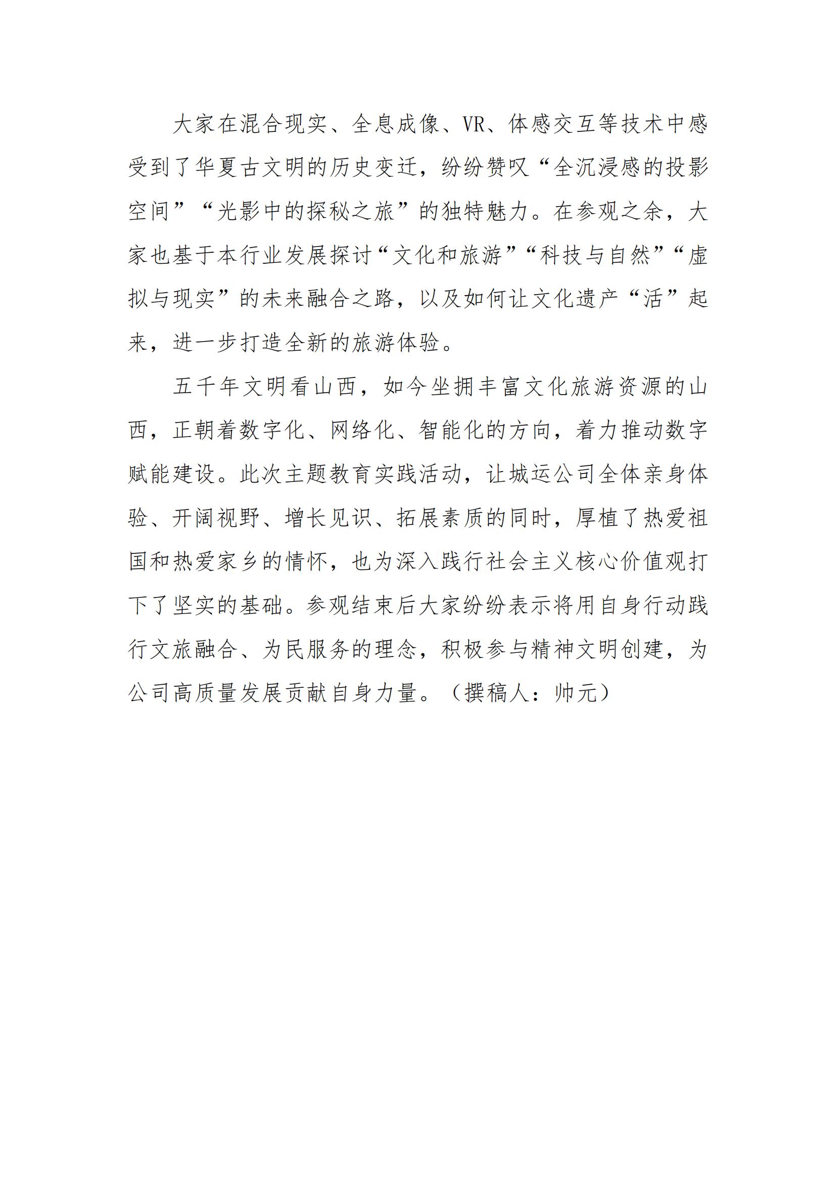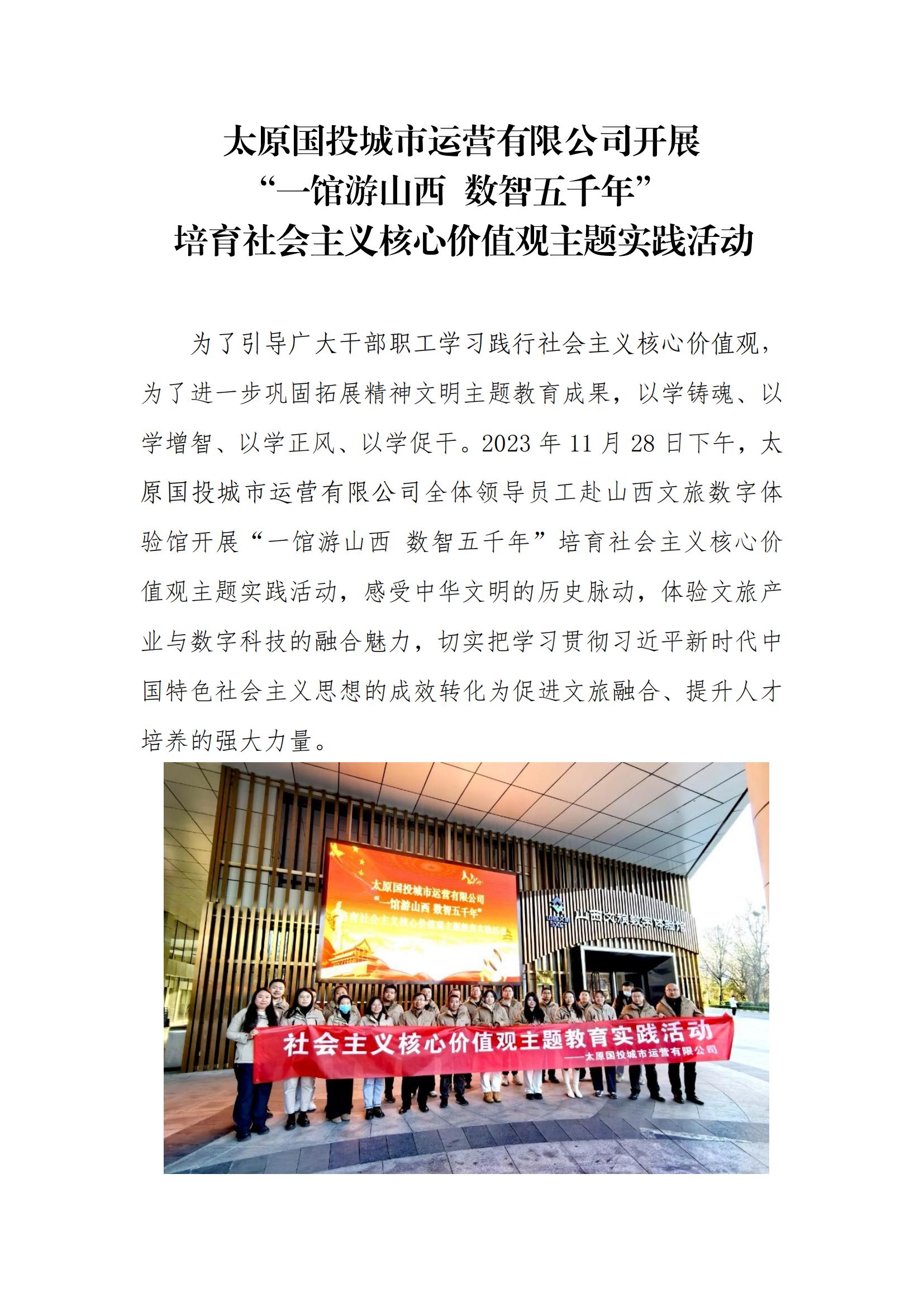 太原國投城市運營有限公司開展“一館游山西 數(shù)智五千年“培育社會主義核心價值觀主題教育實踐活動