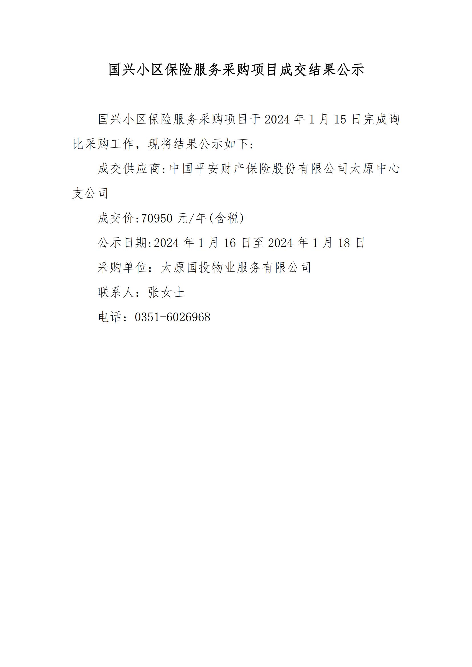 國興小區(qū)保險服務采購項目成交結果公示