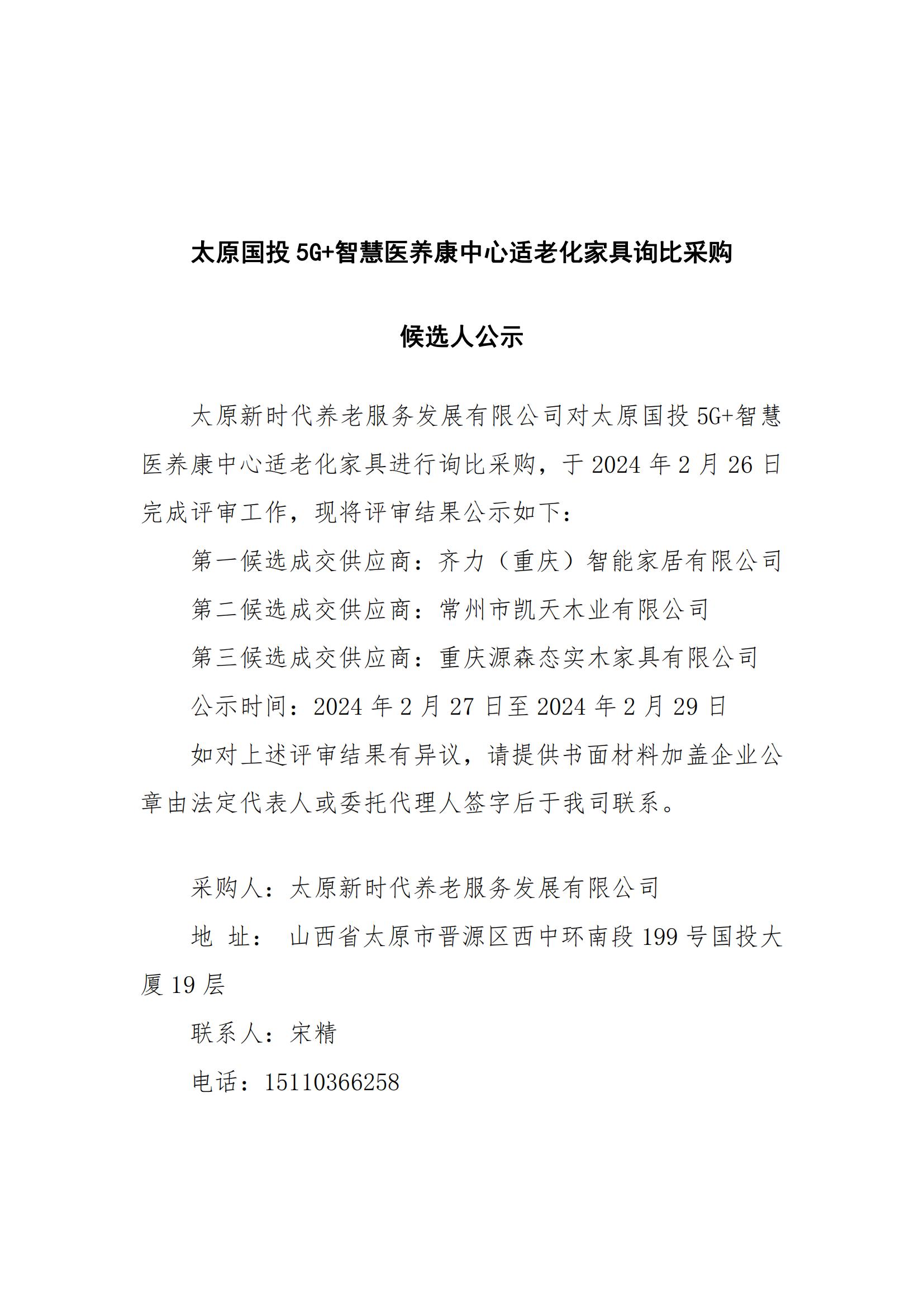 太原國(guó)投5G+智慧醫(yī)養(yǎng)康中心適老化家具詢比采購(gòu)候選人公示