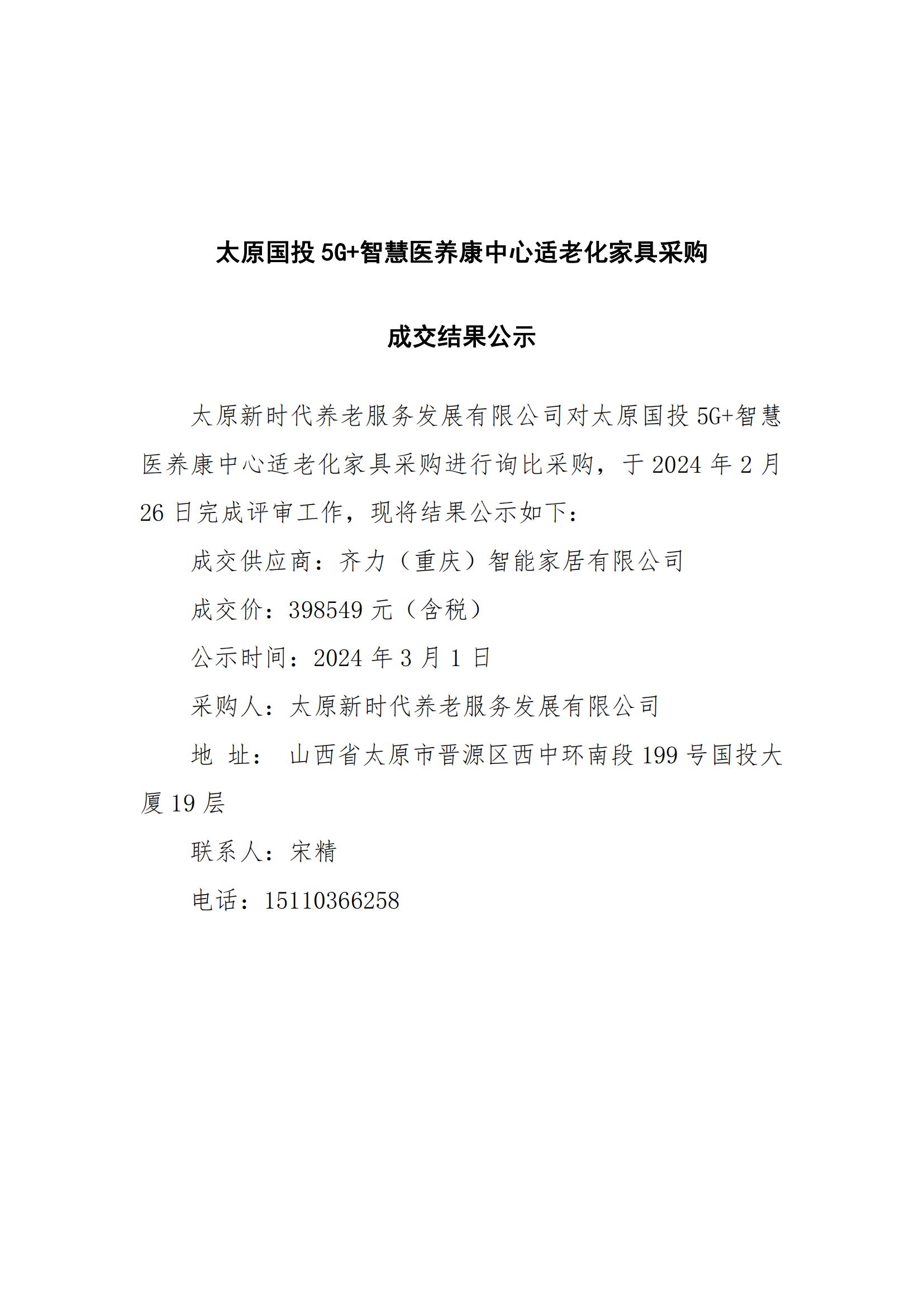 太原國(guó)投5G+智慧醫(yī)養(yǎng)康中心適老化家具采購(gòu)成交結(jié)果公示