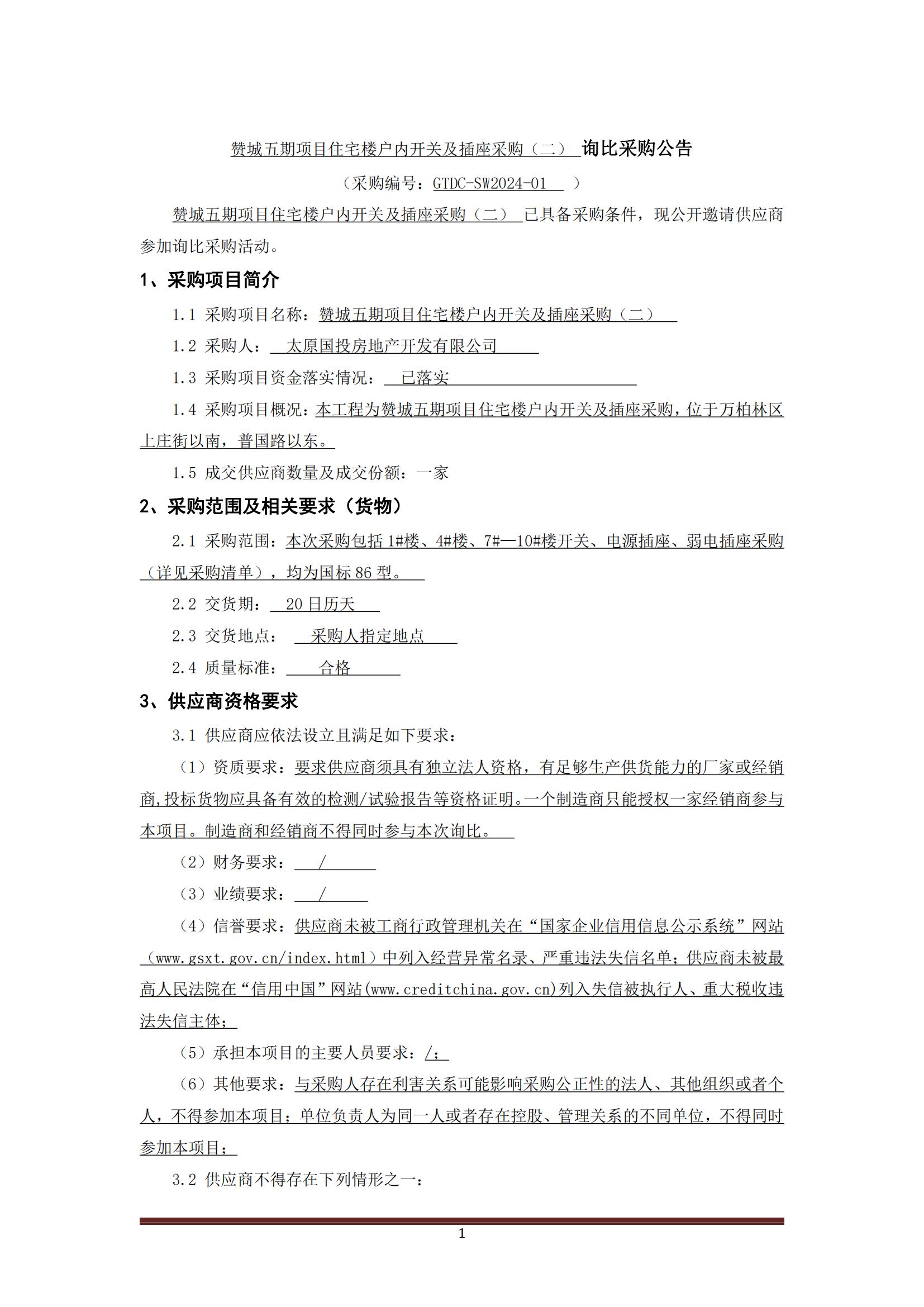 贊城五期項(xiàng)目住宅樓戶內(nèi)開(kāi)關(guān)機(jī)插座采購(gòu)(二)詢比采購(gòu)公告