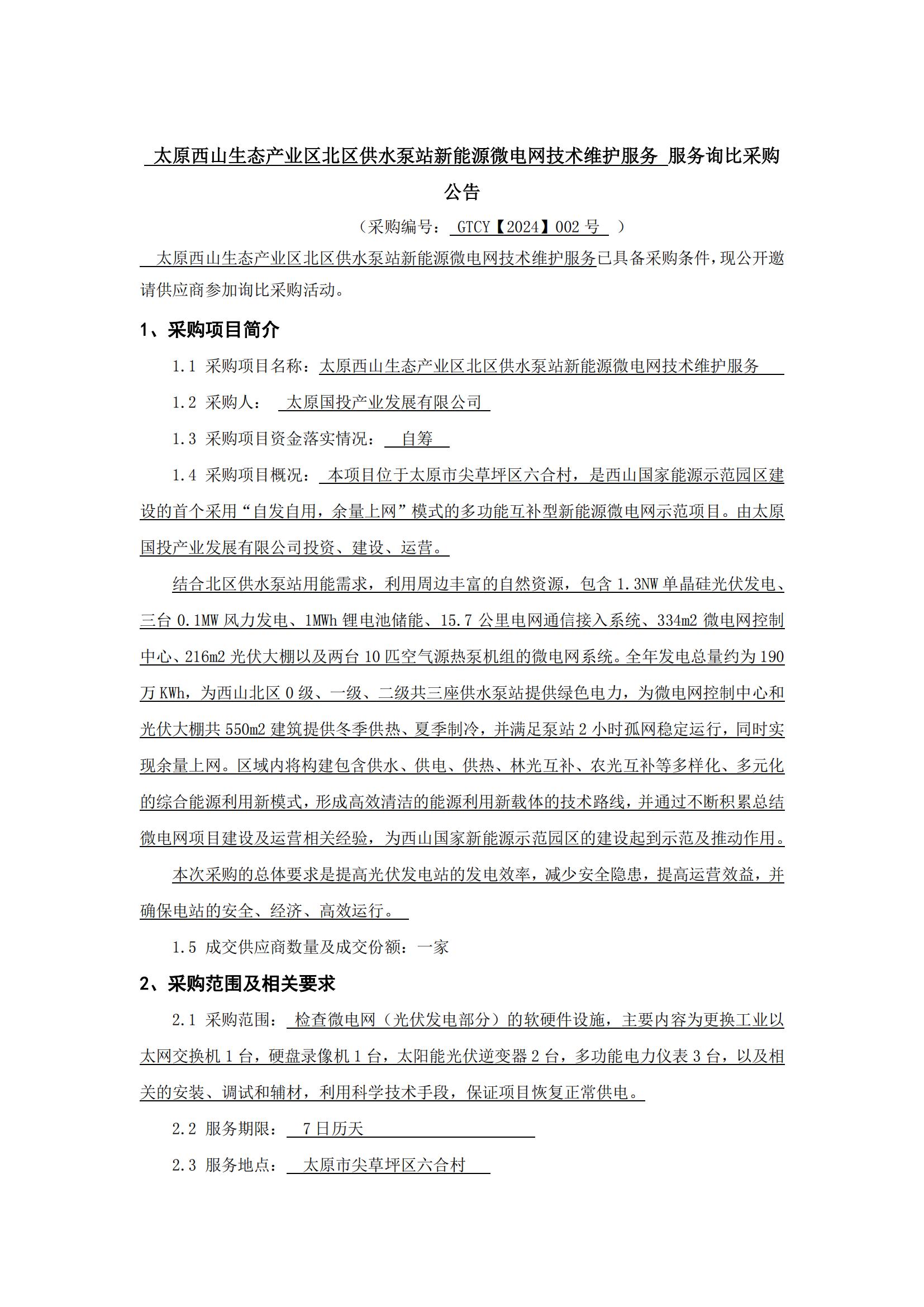 太原西山生態(tài)產(chǎn)業(yè)區(qū)北區(qū)供水泵站新能源微電網(wǎng)技術(shù)維護(hù)服務(wù)服務(wù)詢比采購(gòu)公告