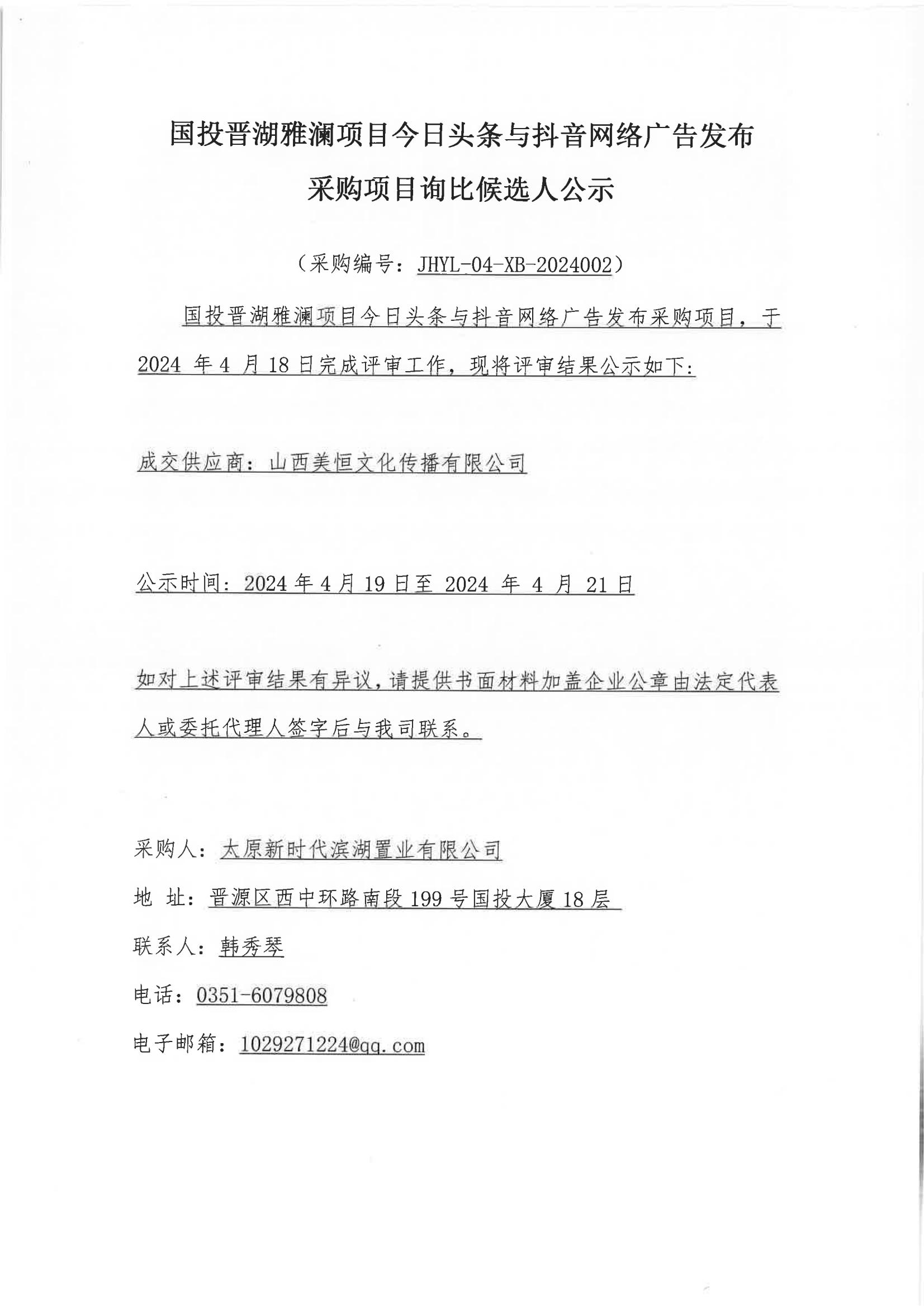 國(guó)投晉湖雅瀾項(xiàng)目今日頭條與抖音網(wǎng)絡(luò)廣告發(fā)布采購(gòu)項(xiàng)目詢比候選人公示