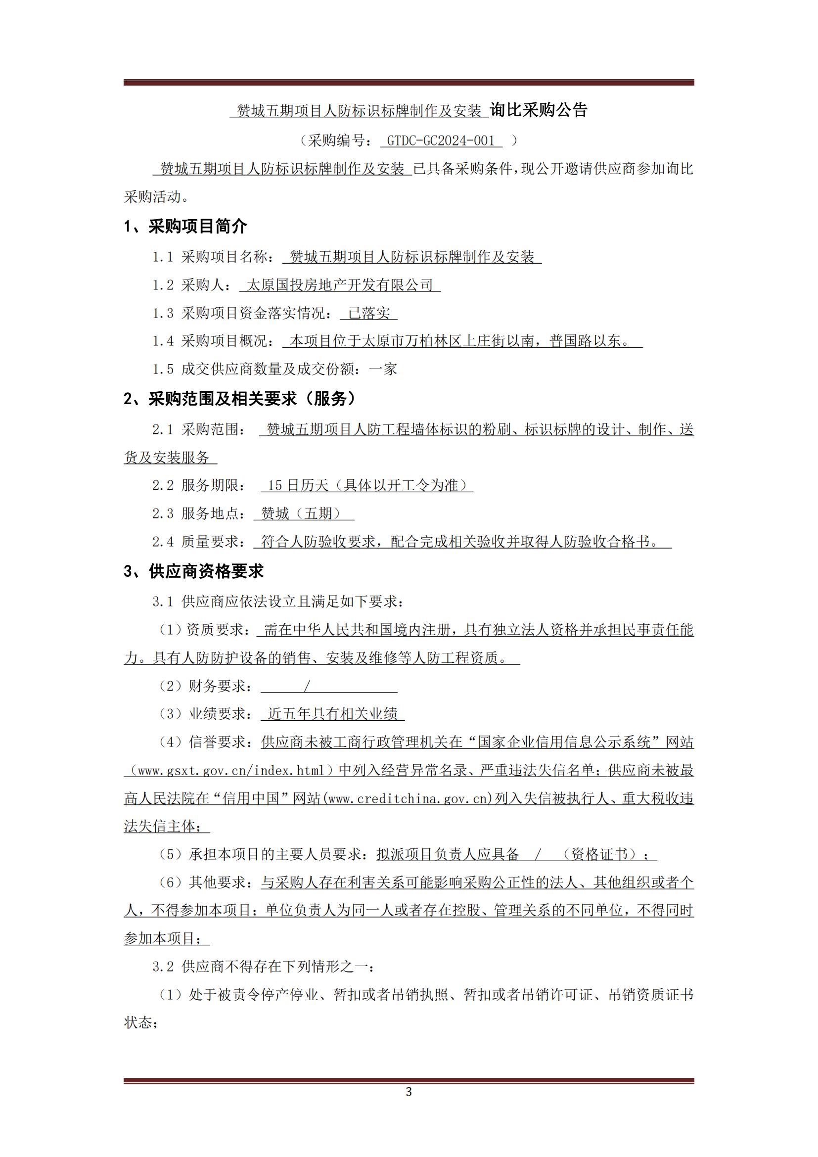 贊城五期項(xiàng)目人防標(biāo)識(shí)標(biāo)牌制作及安裝詢比采購公告