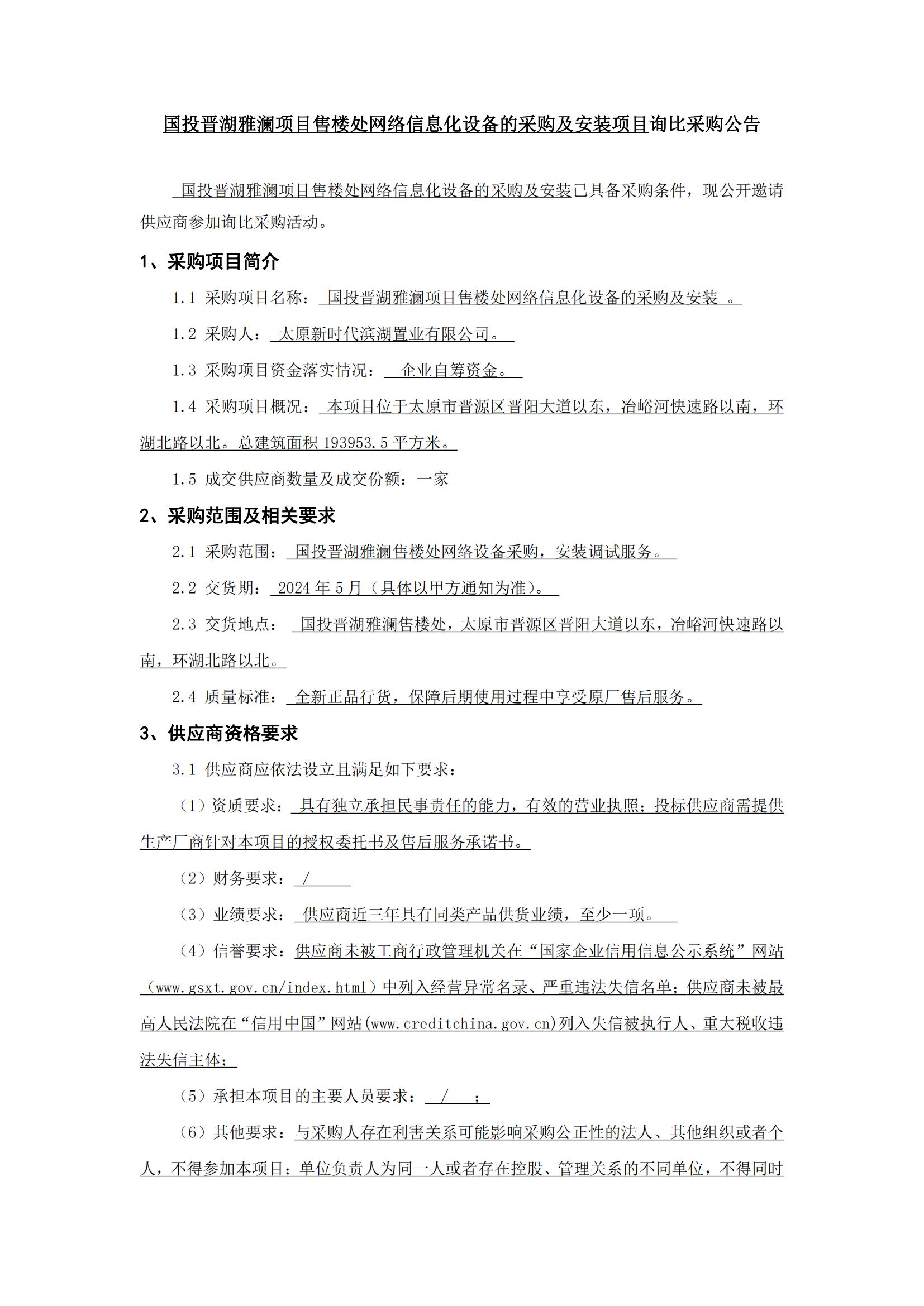 國投晉湖雅瀾項(xiàng)目售樓處網(wǎng)絡(luò)信息化設(shè)備的采購及安裝項(xiàng)目詢比采購公告