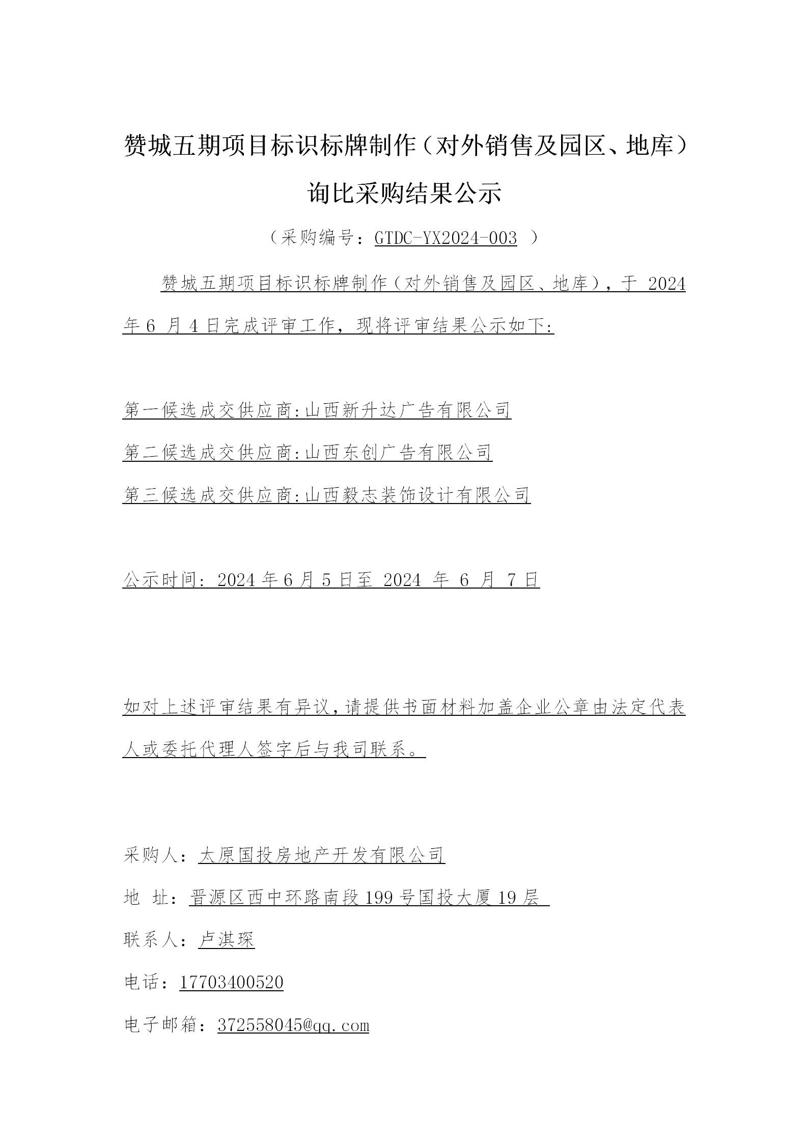贊城五期項(xiàng)目標(biāo)識(shí)標(biāo)牌制作(對(duì)外銷售及園區(qū)、地庫)詢比采購結(jié)果公示