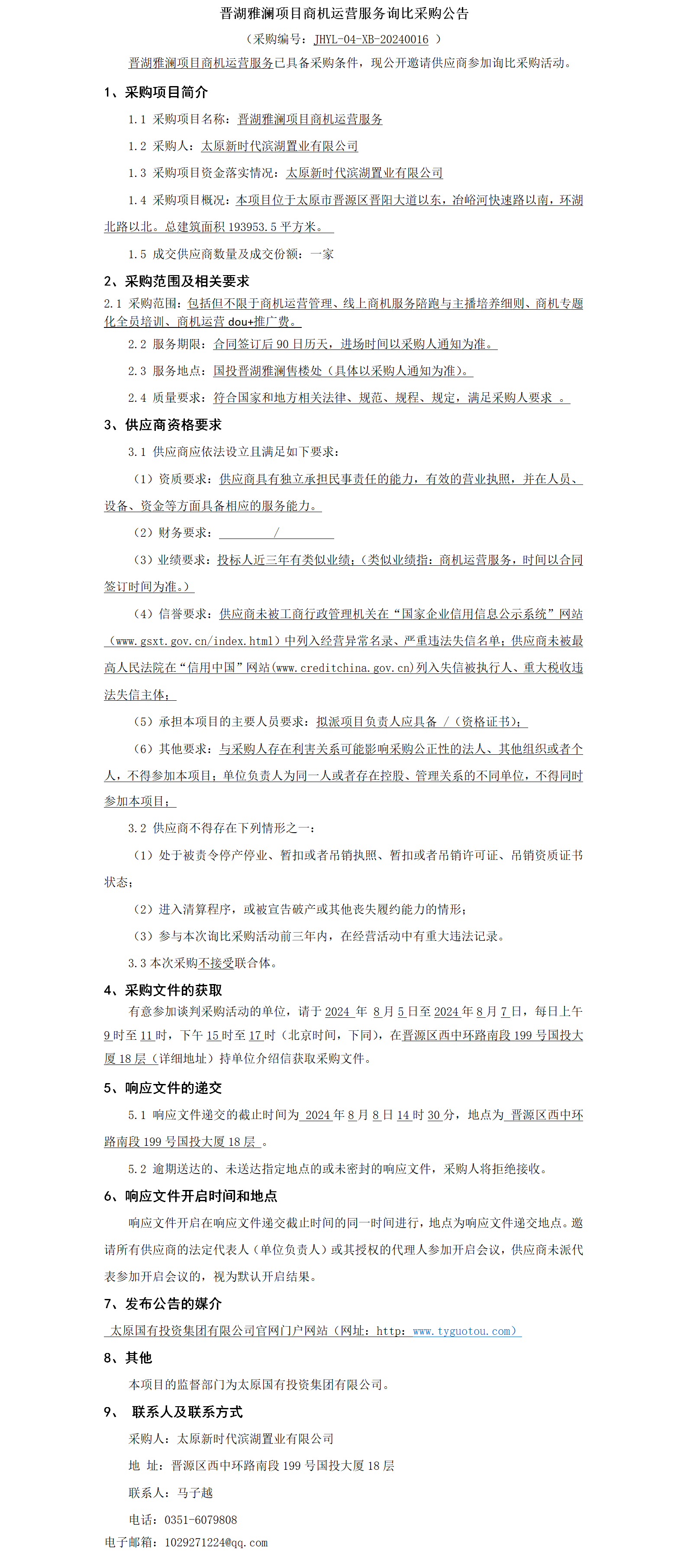 晉湖雅瀾項目商機運營服務詢比采購公告