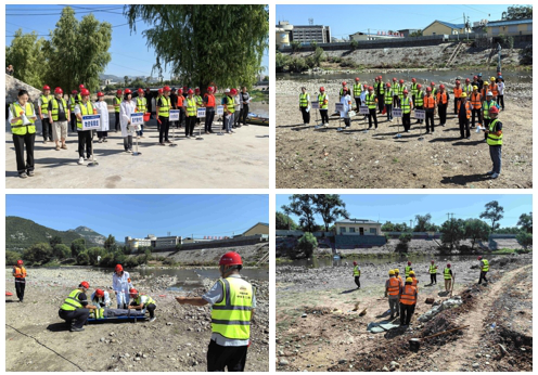 本次演練過程是模擬由于多日連續(xù)降雨,河道水位已超出預(yù)警值,汾河二庫即將開閘泄洪,需要立即組織人員、機(jī)械進(jìn)行疏散。在疏散過程中發(fā)現(xiàn)被困人員、物資,項(xiàng)目應(yīng)急指揮部迅速啟動(dòng)應(yīng)急預(yù)案,各應(yīng)急小組迅速響應(yīng),按照預(yù)案分工,有序開展預(yù)警發(fā)布、人員疏散、物資調(diào)配、現(xiàn)場(chǎng)搶險(xiǎn)等一系列應(yīng)急處置工作。