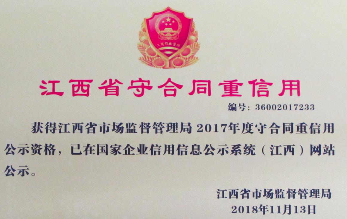 國家高新技術企業(yè) 江西省守合同重信用