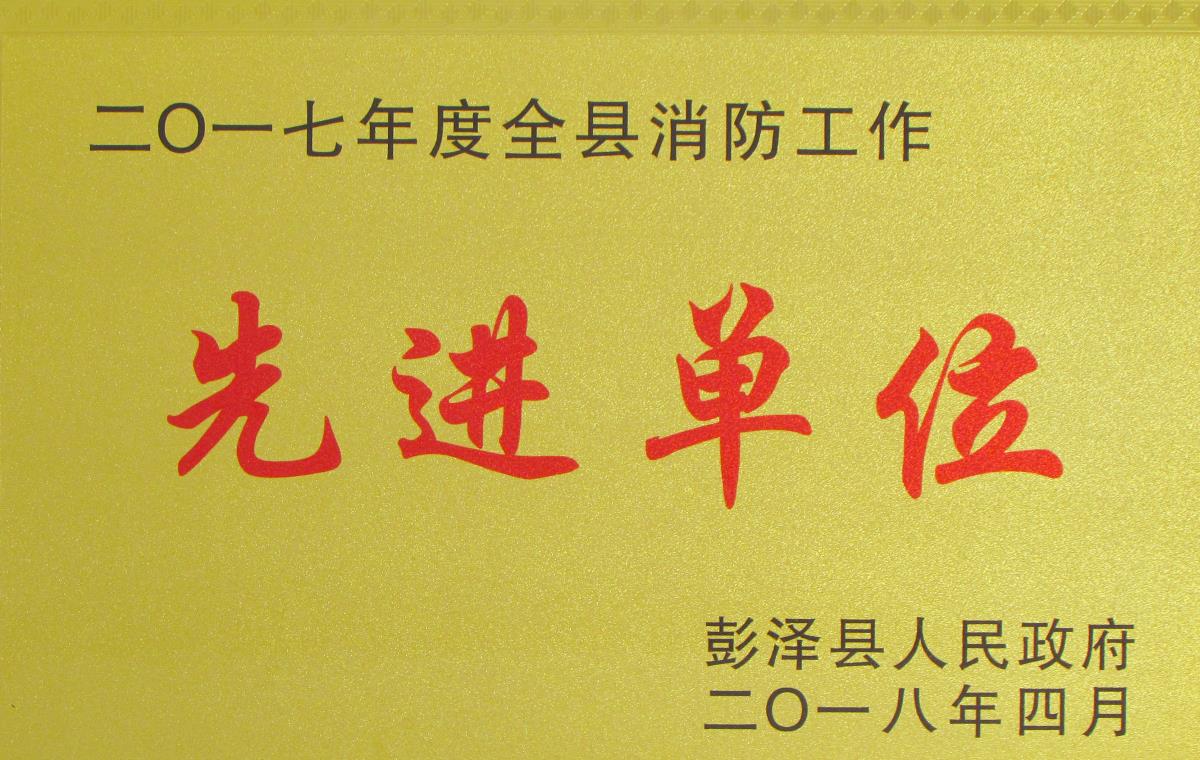 2018年度納稅貢獻獎 2017年度彭澤縣消防先進單位